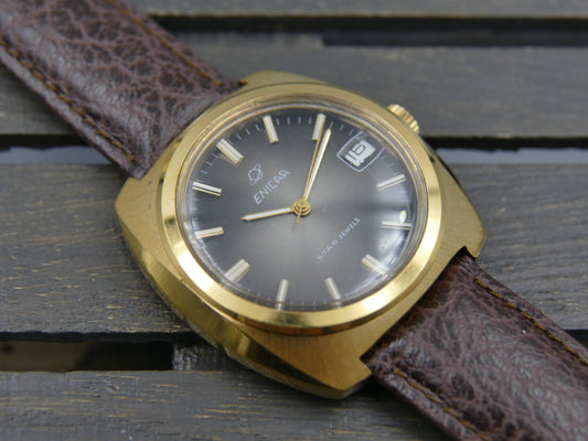 70s vintage watch mens Enicar star jewels automatic AR 167 27J gold pl Jumbo
