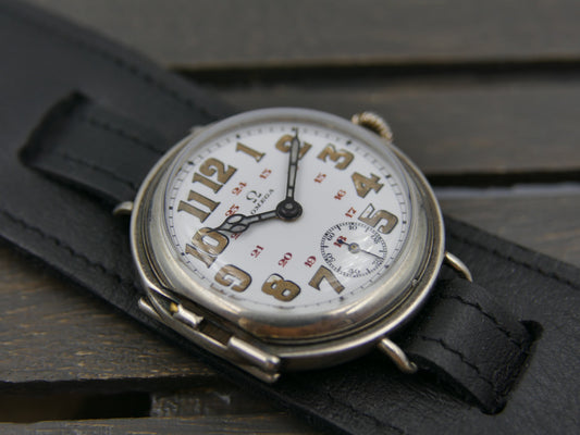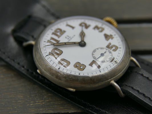 10s vintage watch mens Omega WW1 Oficcer trench military jumbo silver case cal. 13'''
