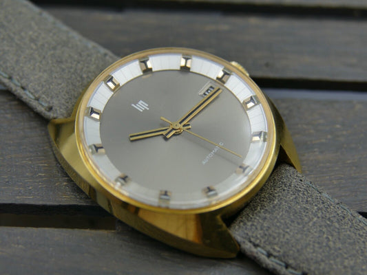 70s vintage watch mens LIP gray dial automatic Durowe 7525 2 gold pl 35mm c-case