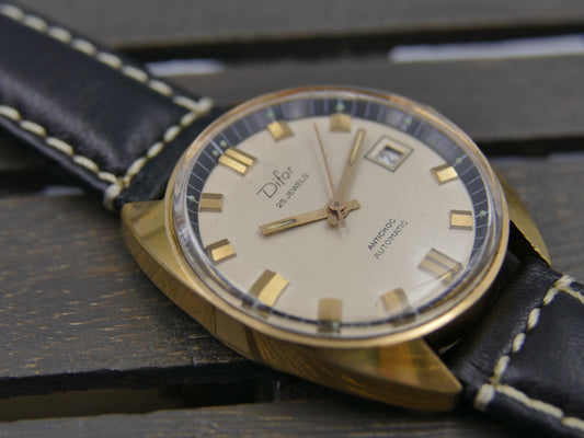 70s vintage watch mens Difor 25 jewels automatic ETA 2472 gold pl serviced