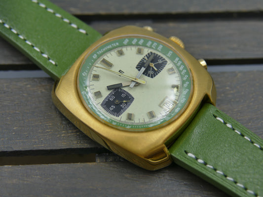 70s vintage watch mens LIP chronograph valjoux 7734 green serviced