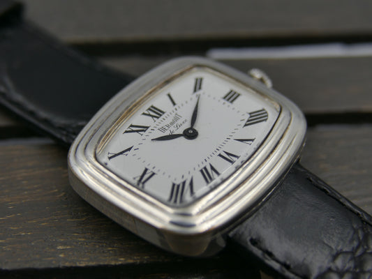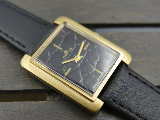 70s vintage watch mens Fortis tank manual wind black leather dial rare