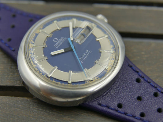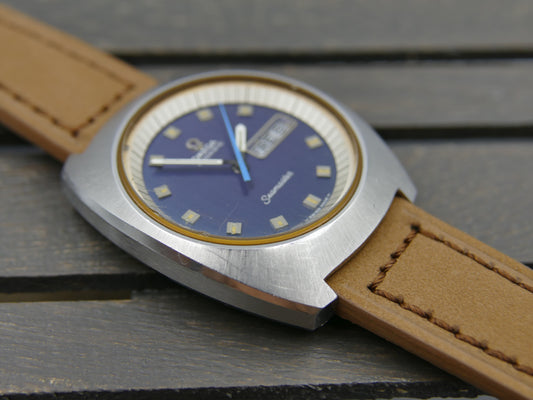 70s vintage watch mens Omega Dynamic ref. 166.108 automatic cal. 1022 steel blue