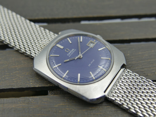 70s vintage watch mens Omega De Ville ref 166.085 automatic cal. 1002 waffle blue dial serviced