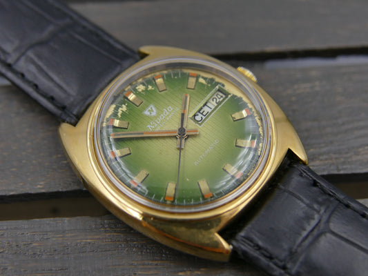 70s vintage watch mens Nivada Compensamatic ref 67111 automatic AS 2066 green dial serviced