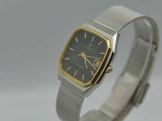 80's vintage watch mens Eterna ref. 113.4151.41 quartz Eta 955.411 steel & gold