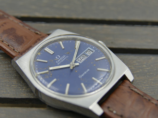 70’s vintage watch mens Omega Geneve ref 166.0120 automatic cal 1022 blue serviced