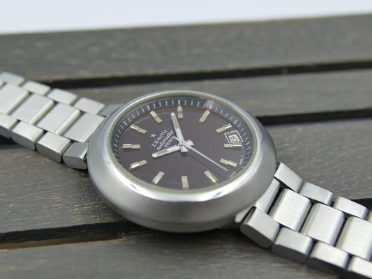 70s vintage watch Zenith ref 01-1190-290 UFO Disco Volante Automatic burgundy dial serviced