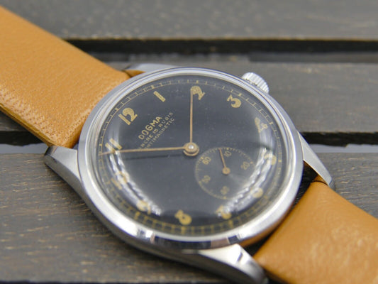 vintage watch mens Dogma hand wind black dial steel case ref 1736 mint 34.5mm