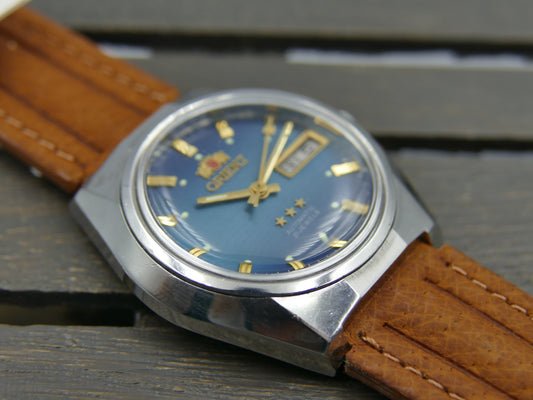 vintage watch mens Orient 3 star automatic 46941 blue dial serviced steel 38mm