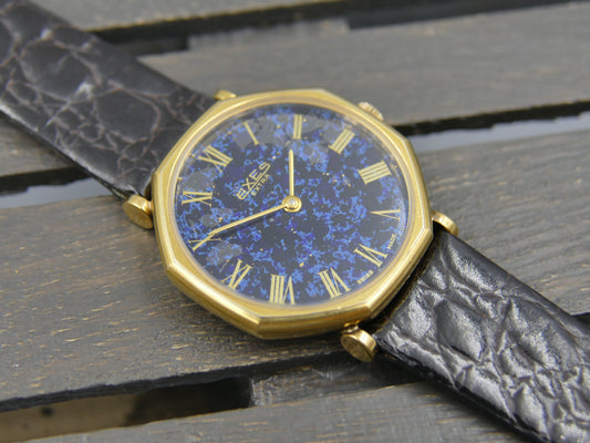 vintage watch mens swiss Axes extra thin Lapis Lazuli Peseux 7001 mint