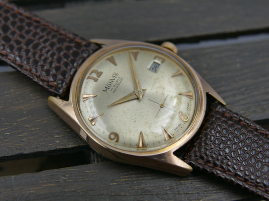 vintage watch mens swiss dress Monvis 408 gold pl