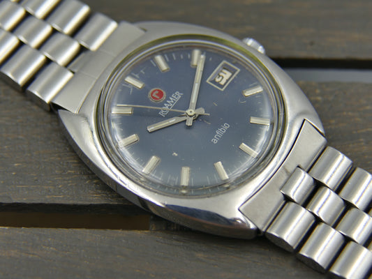 Vintage watch mens Roamer anfibio 430-1120.012 manual wind serviced blue dial