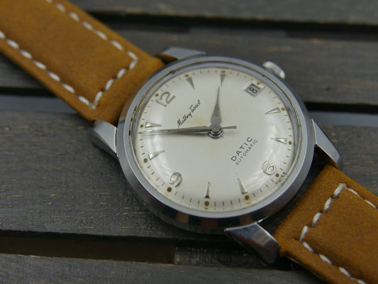 50's vintage watch mens Mathey Tissot Datic automatic AS 1555N rare steel 34mm
