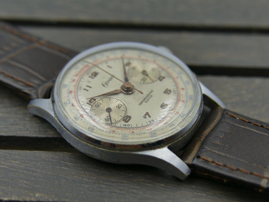 50's vintage watch mens Lemania UTI 105 chronograph lwo 1275 serviced 35mm