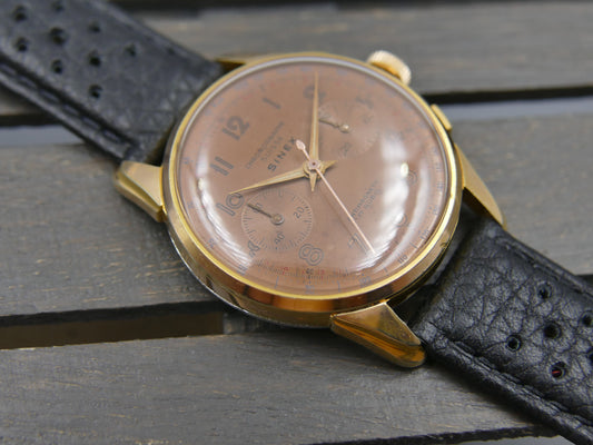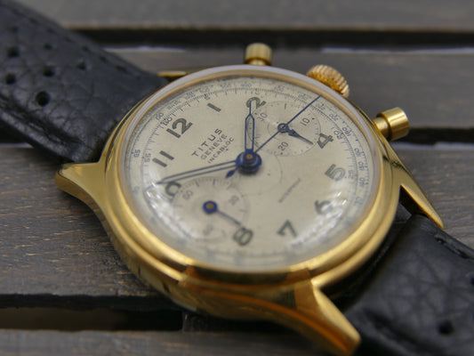 50's vintage watch mens Titus Genève ref 957 Chronograph Landeron 48 gold pl 37mm