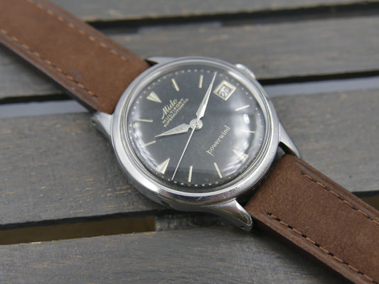 50s vintage watch mens Mido Multifort Superautomatic Powerwind black 917PC Borgel