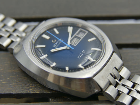 70's vintage watch mens Certina DS-2 ref. 5801 300 automatic 25-651 steel blue