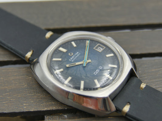 70s vintage men Certina DS-2 automatic cal 25-652 ref. 5901 300 blue Spider dial