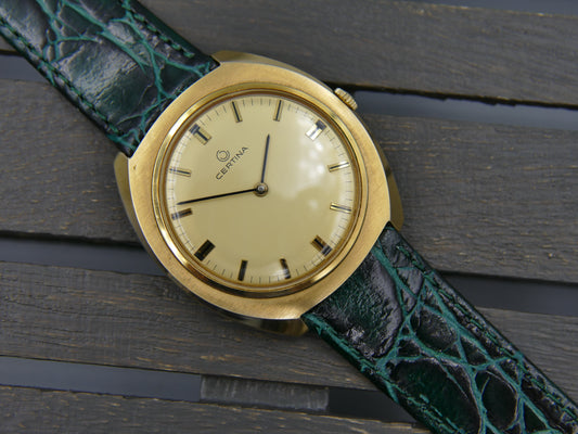 60s Vintage watch mens oversize Certina ref. 860.3510.25 hand wind 28-10 gold pl Thin