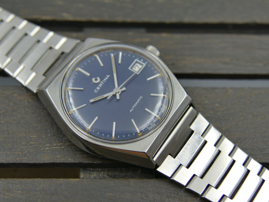 70s vintage watch mens Certina 605.3001.14 automatic blue SS serviced