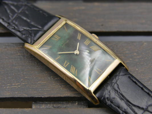 60s vintage watch mens Certina Good Time ref 0806 856 green dial rectangular curved