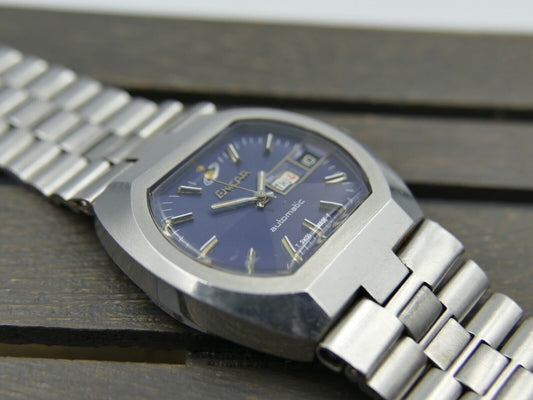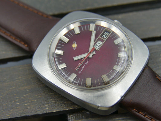 70's vintage watch mens Enicar steel jumbo oversize burgundy automatic AR 167