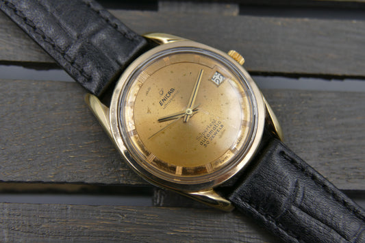 50's vintage watch mens Enicar Ultrasonic automatic ETA 1258 serviced gold pl