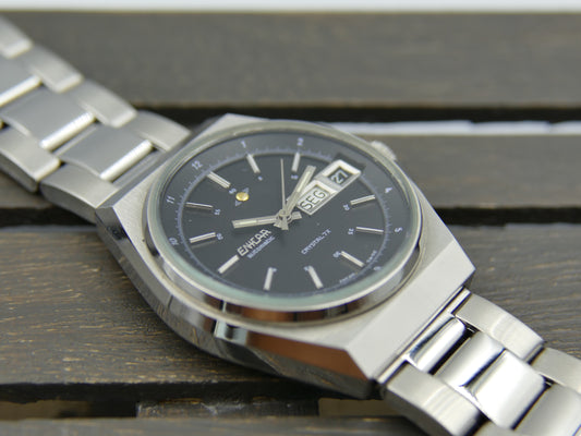 70s vintage watch mens Enicar Crystal 7x ref. 167.008.184 automatic 167D mint black dial