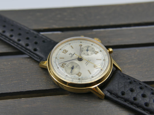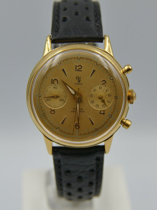 60's vintage watch mens Yema chronograph valjoux 92 gold PL serviced
