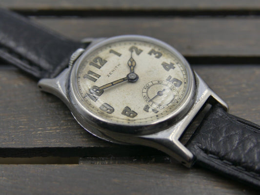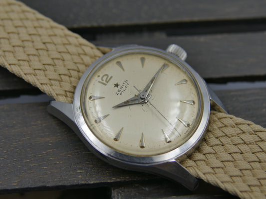 50s vintage watch mens Zenith Pilot cal. 120 serviced 35mm