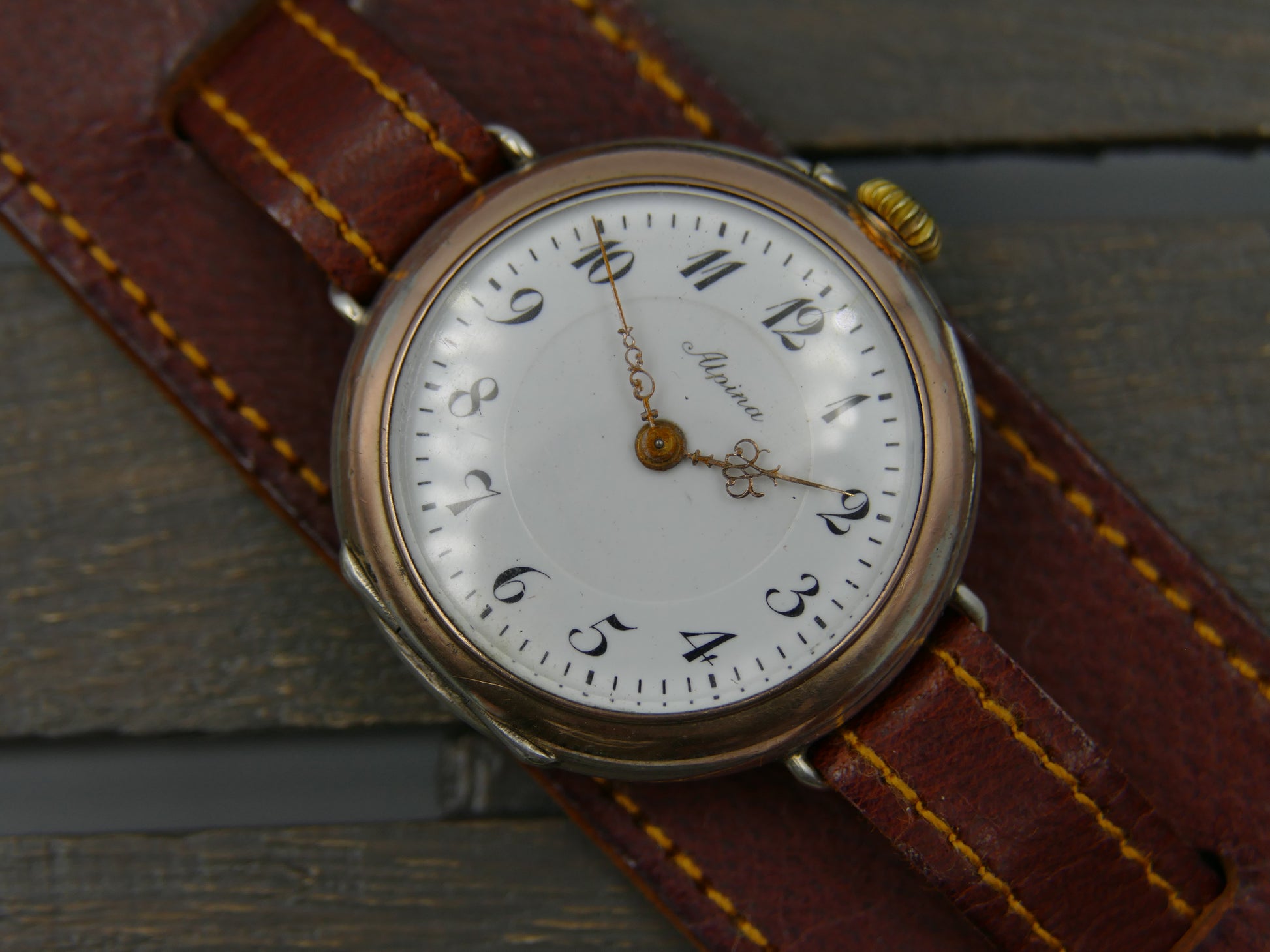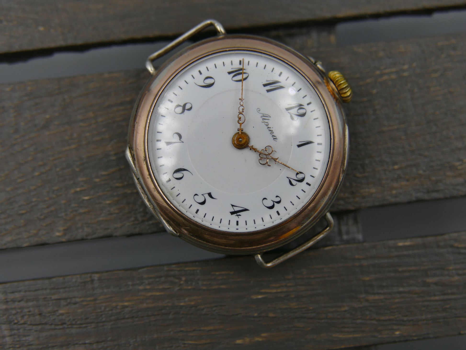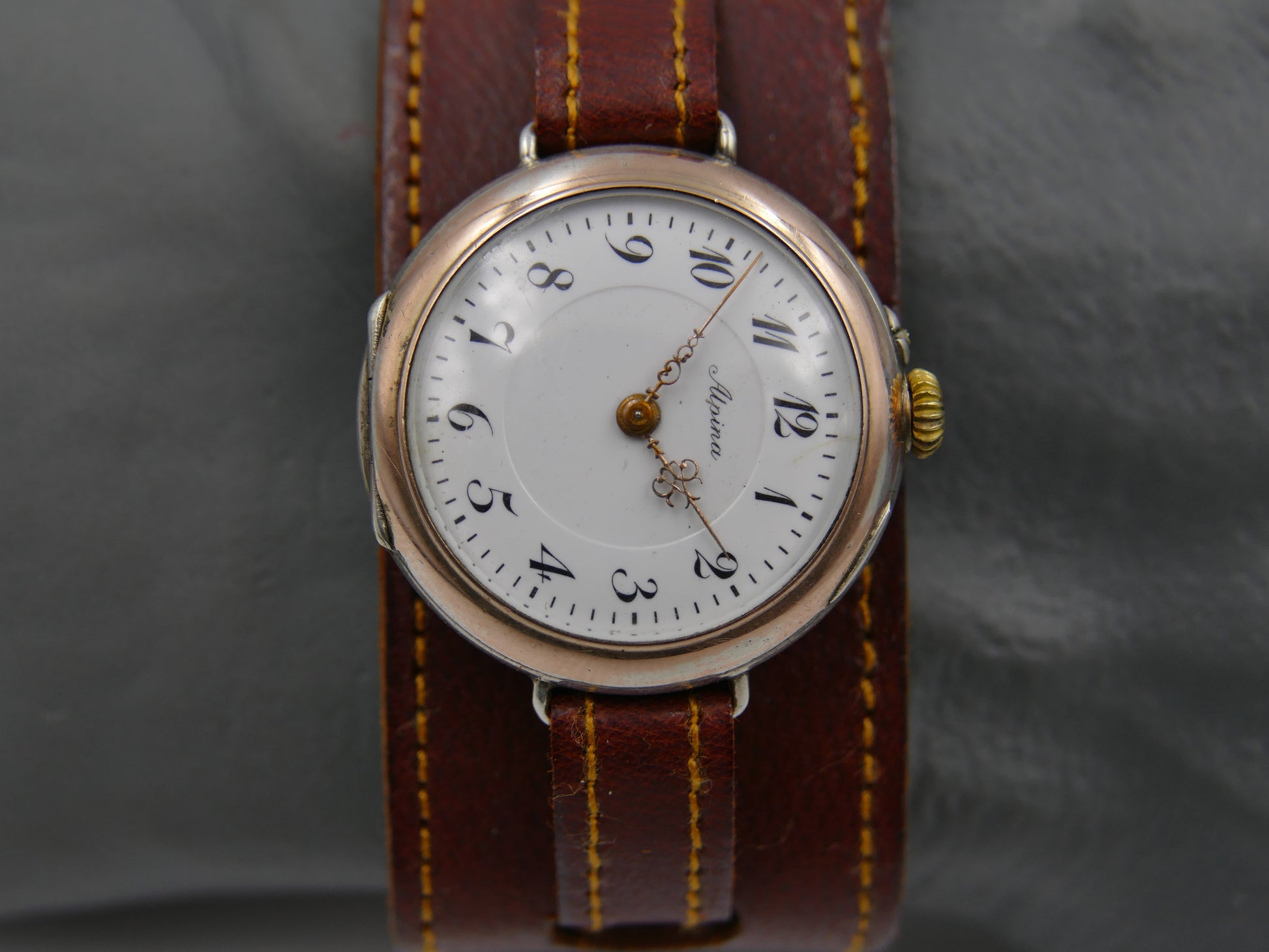 10s vintage watch Alpina solid silver 0.800 and rose gold manual wind