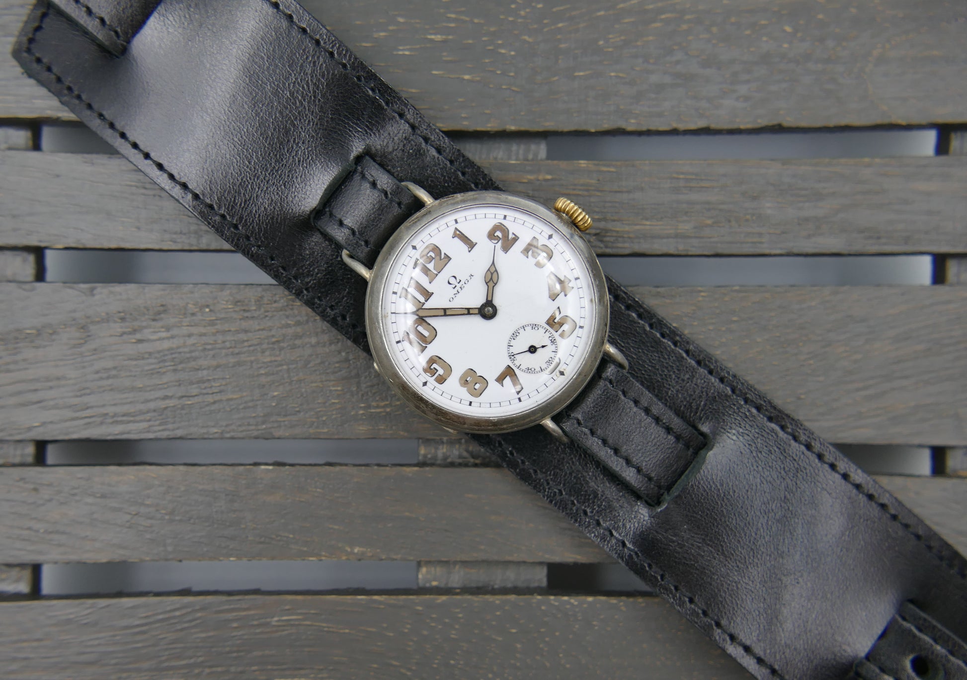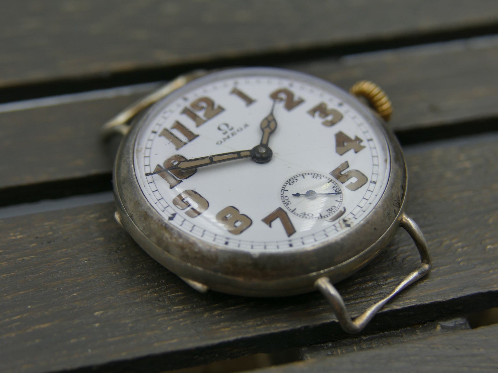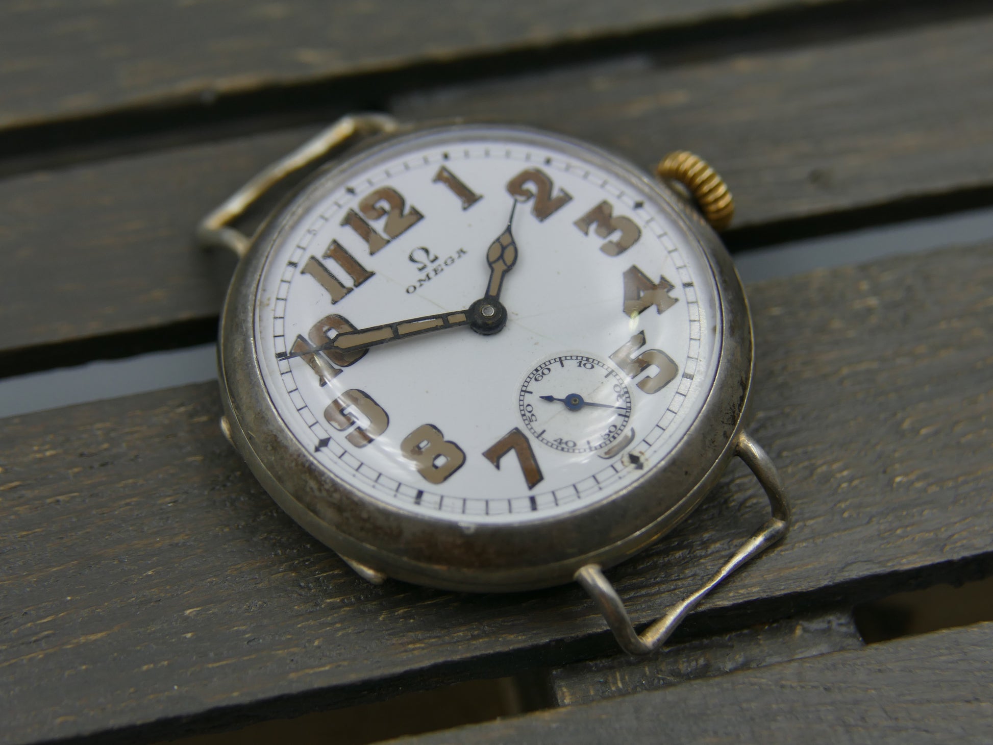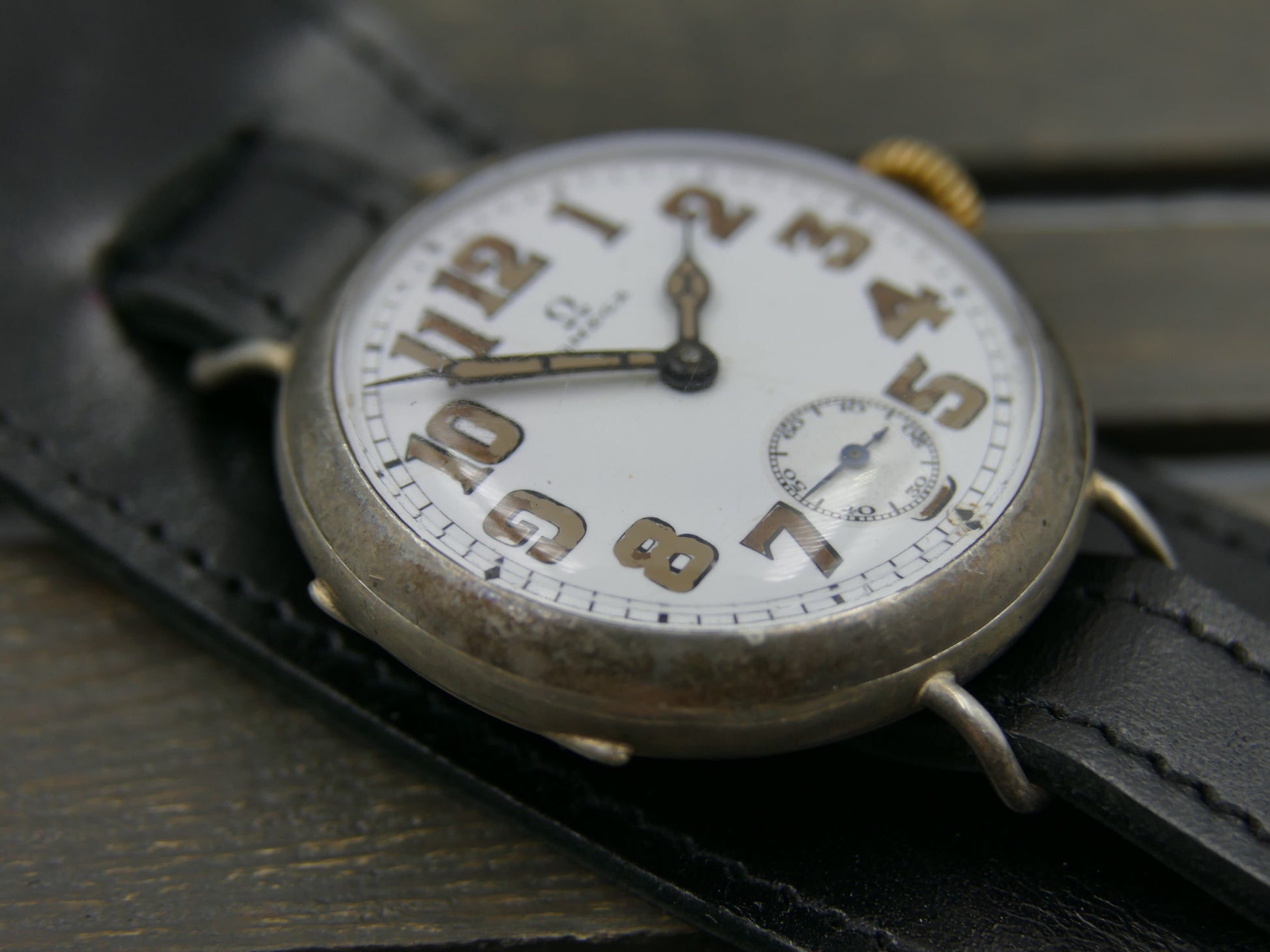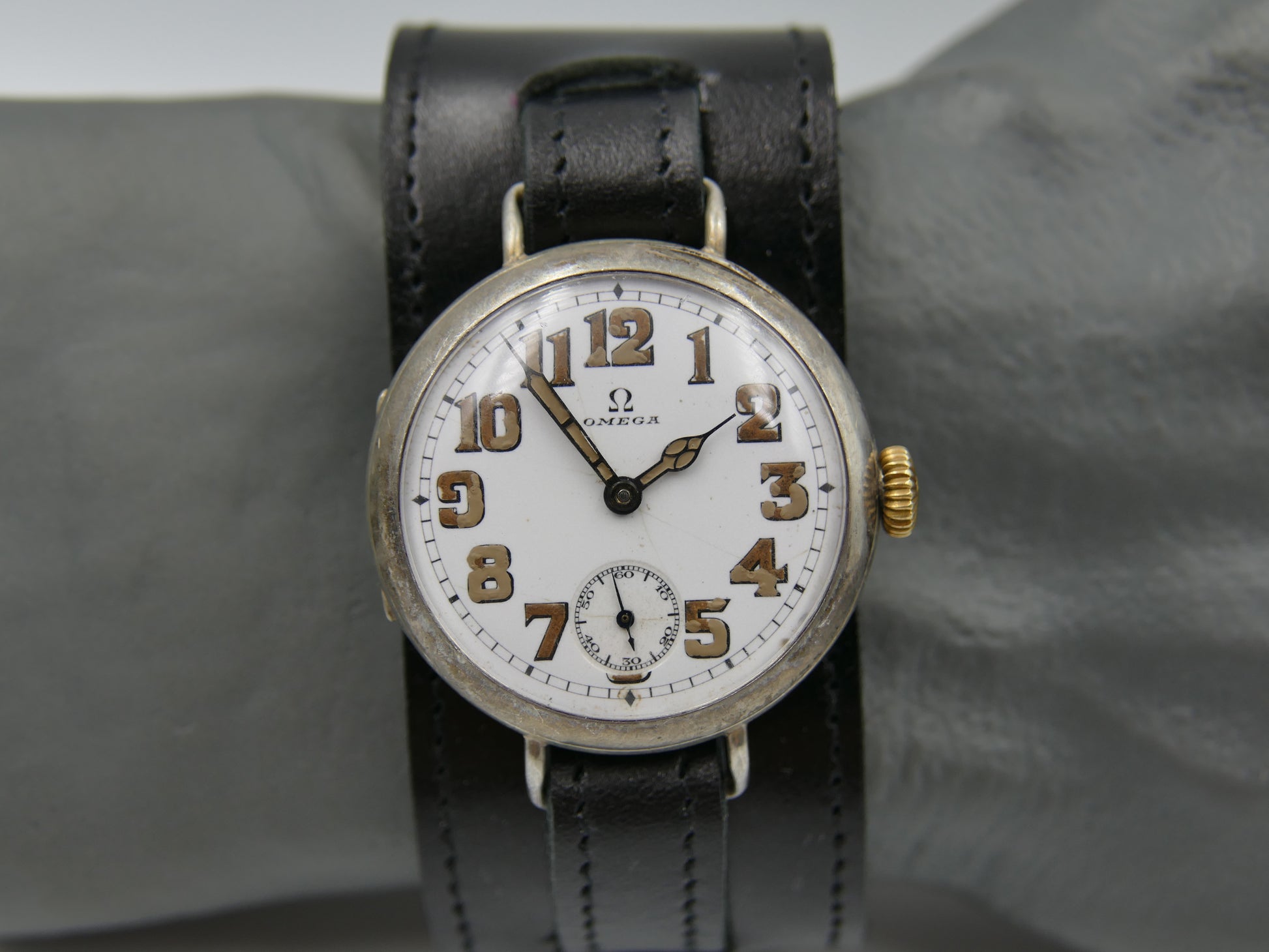 10s vintage watch mens Omega WW1 Oficcer trench military jumbo silver case cal. 13'''