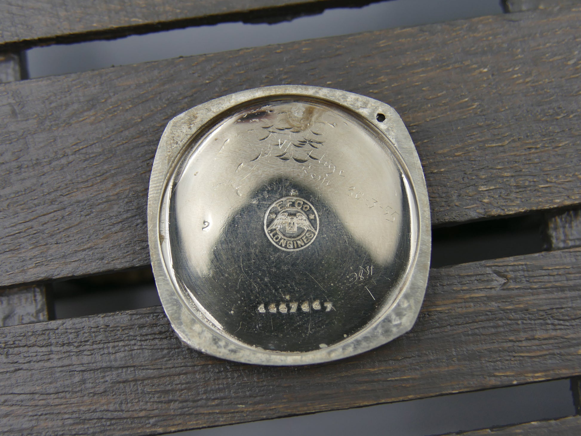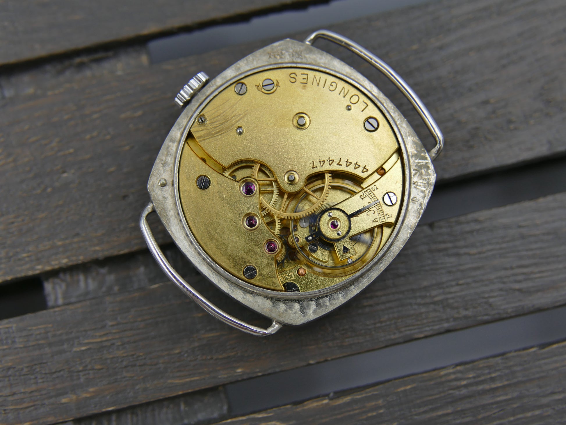 From 1925 this is a remarkably Longines trench watch, powered by the manual-wind calibre 13.34. Both the movement and case share matching serial numbers, confirming its authenticity and dating it to the same era.