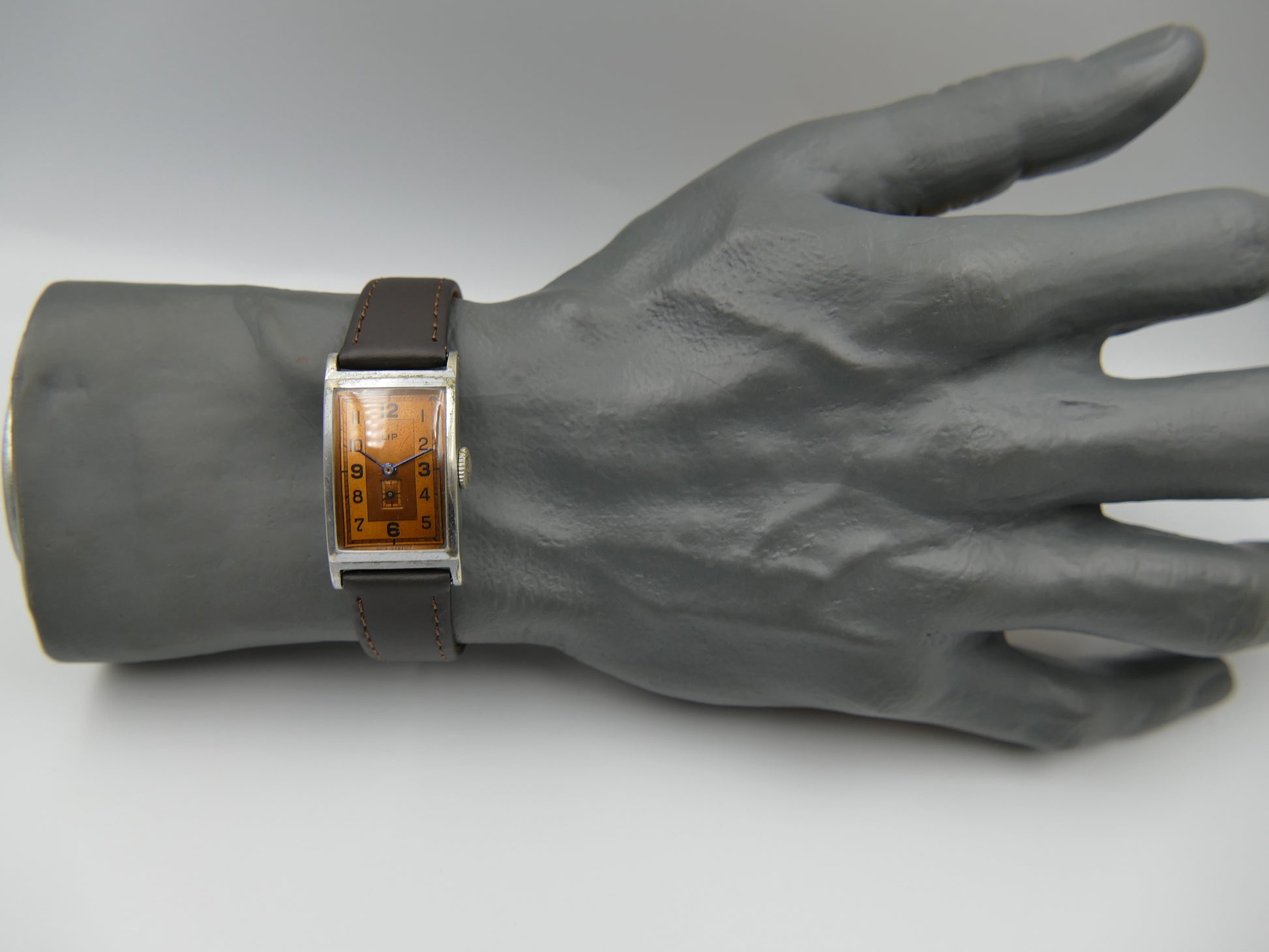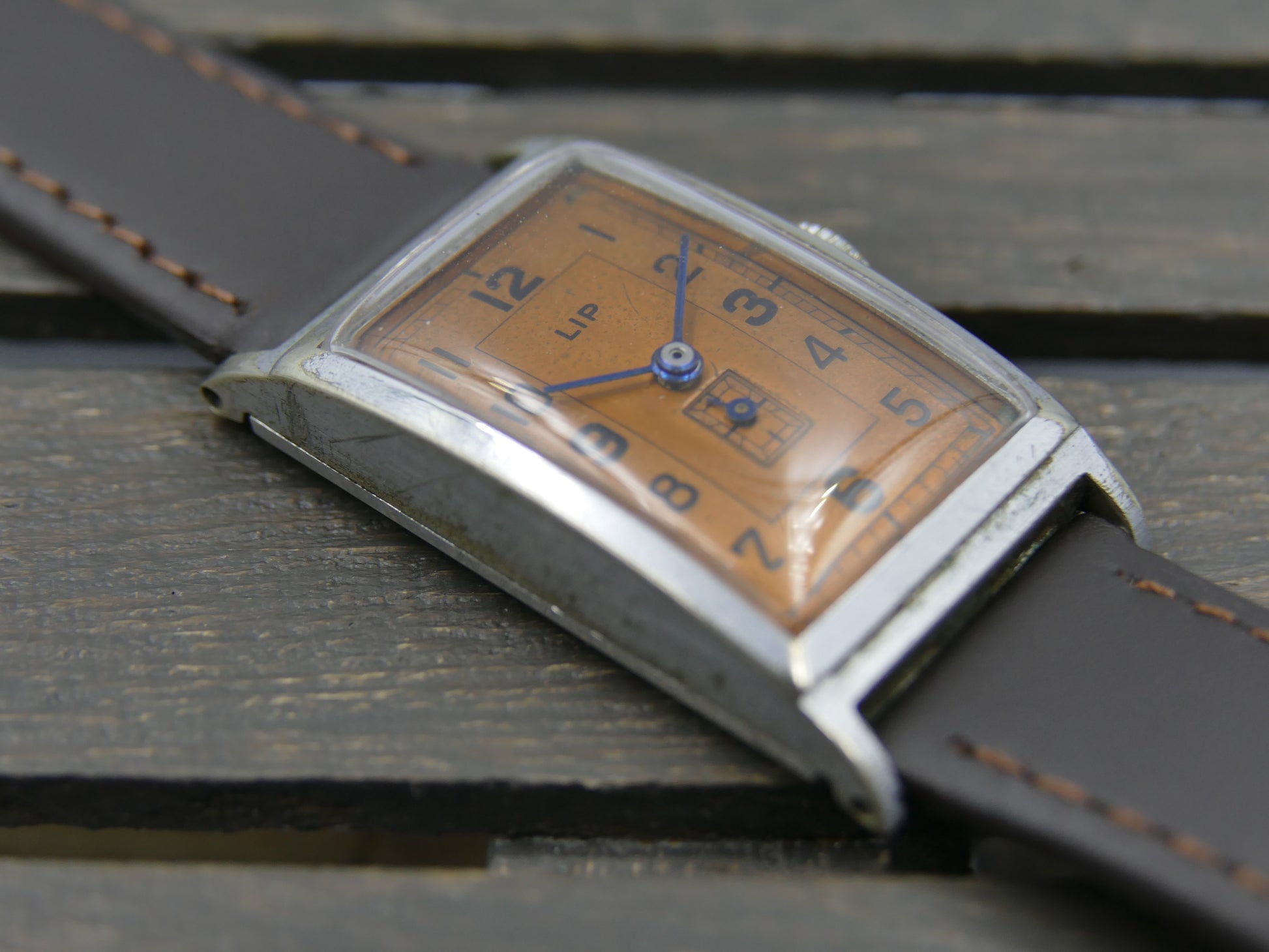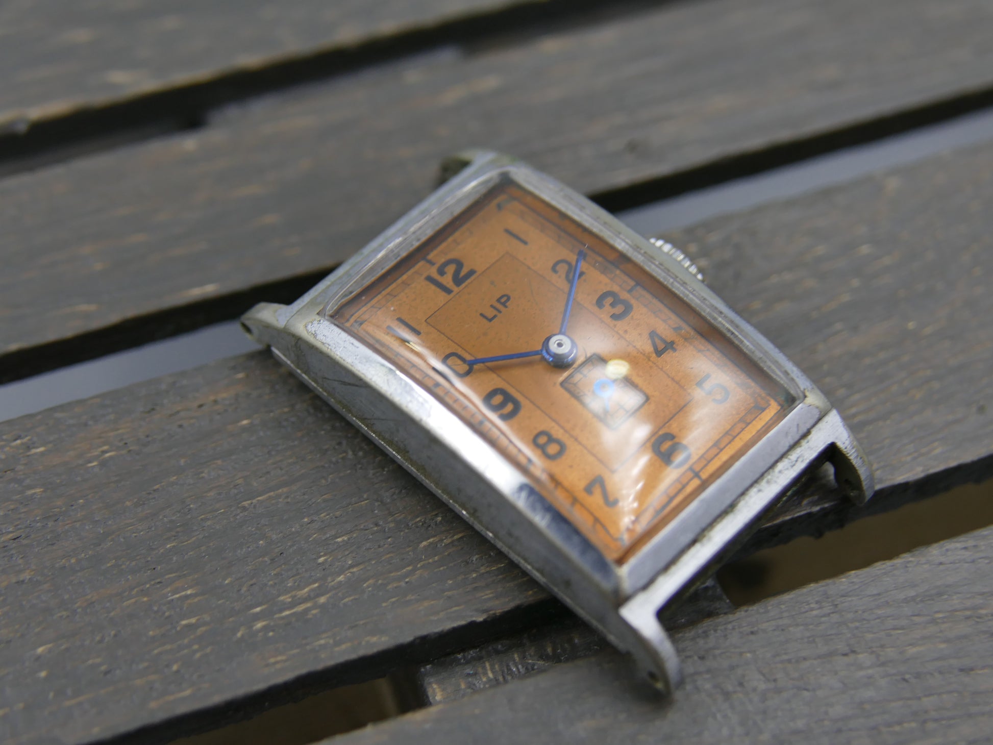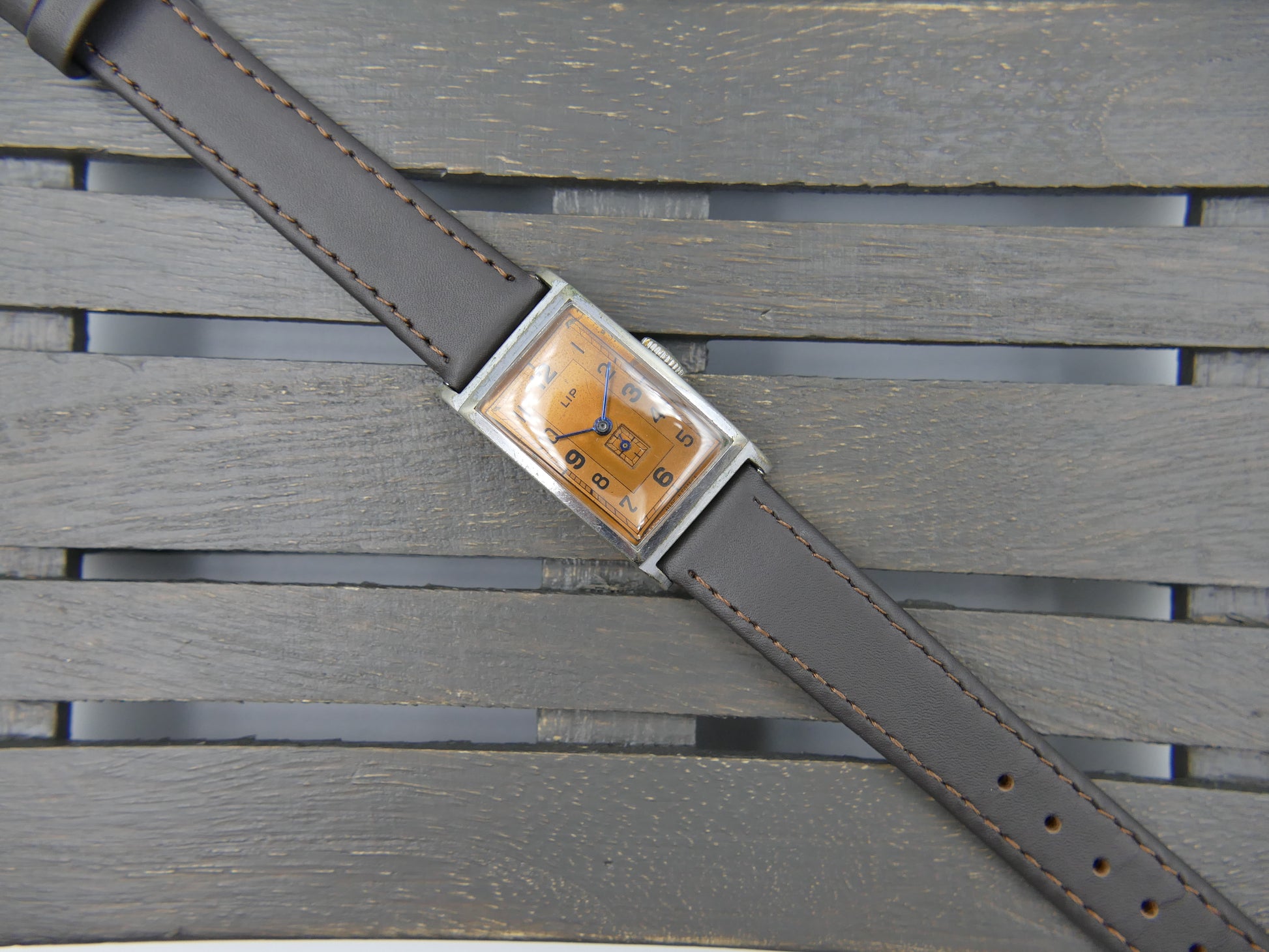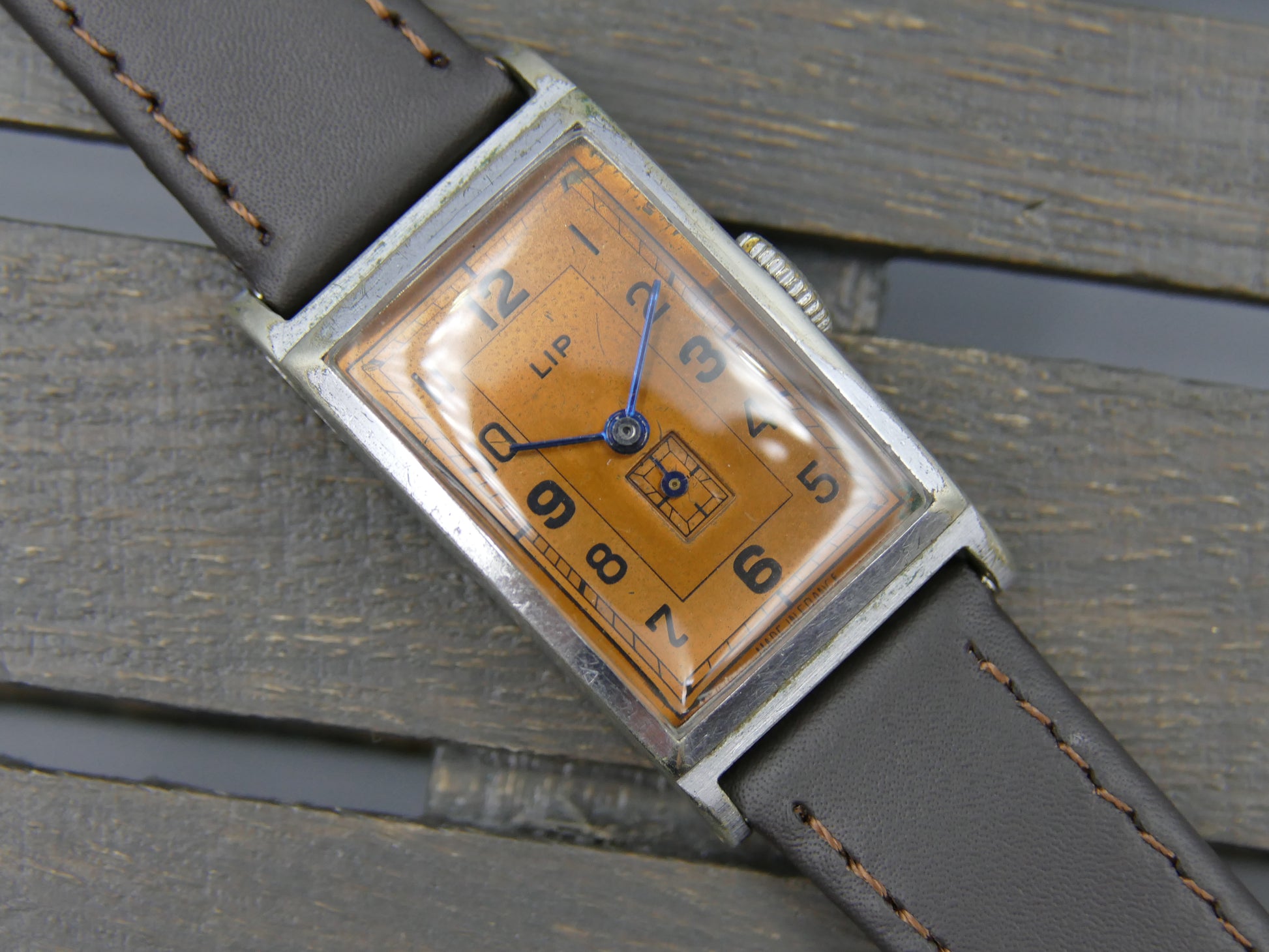 30s vintage watch art deco LIP T18 hand wind Churchill salmon dial serviced