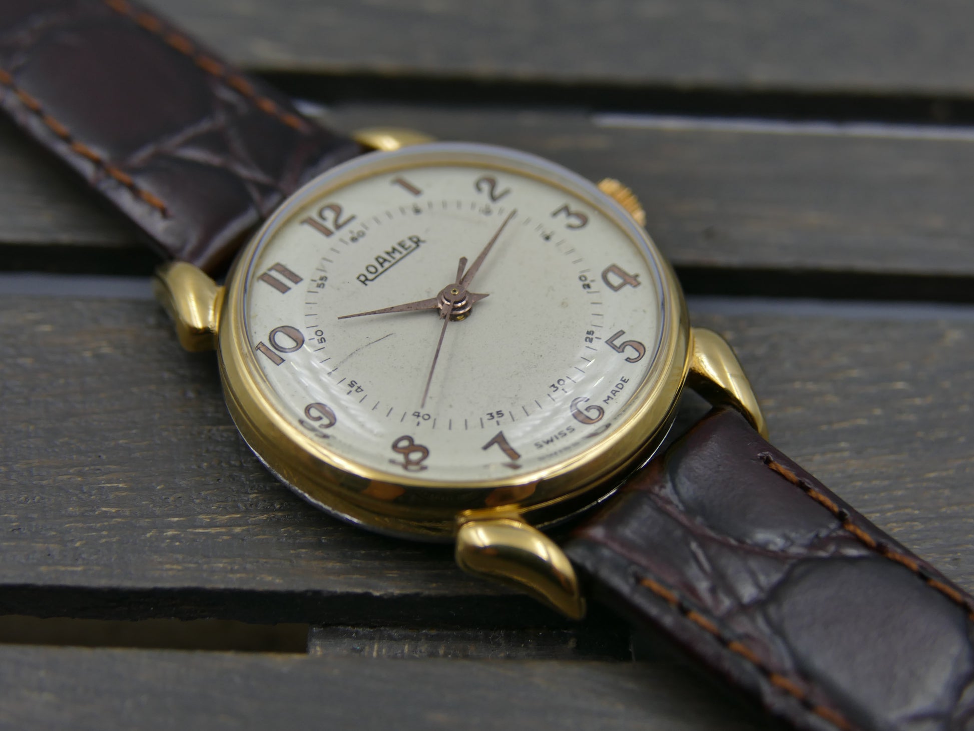 40s vintage watch Roamer ref 6502 crab lugs hand wind MST 372 two tone
