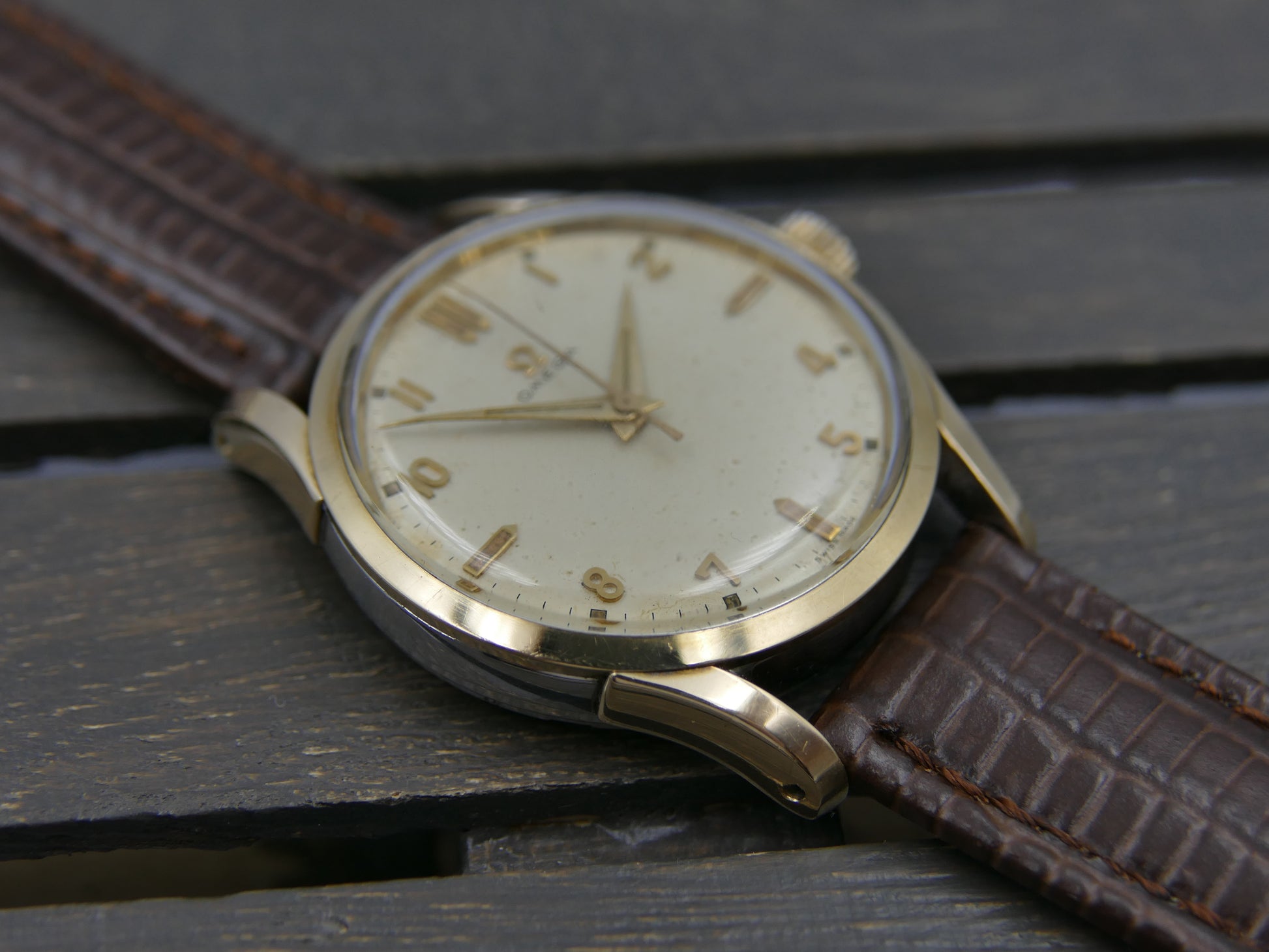 50s vintage watch mens Omega ref. 2640 -6 SC hand wind cal 283 gold cap serviced