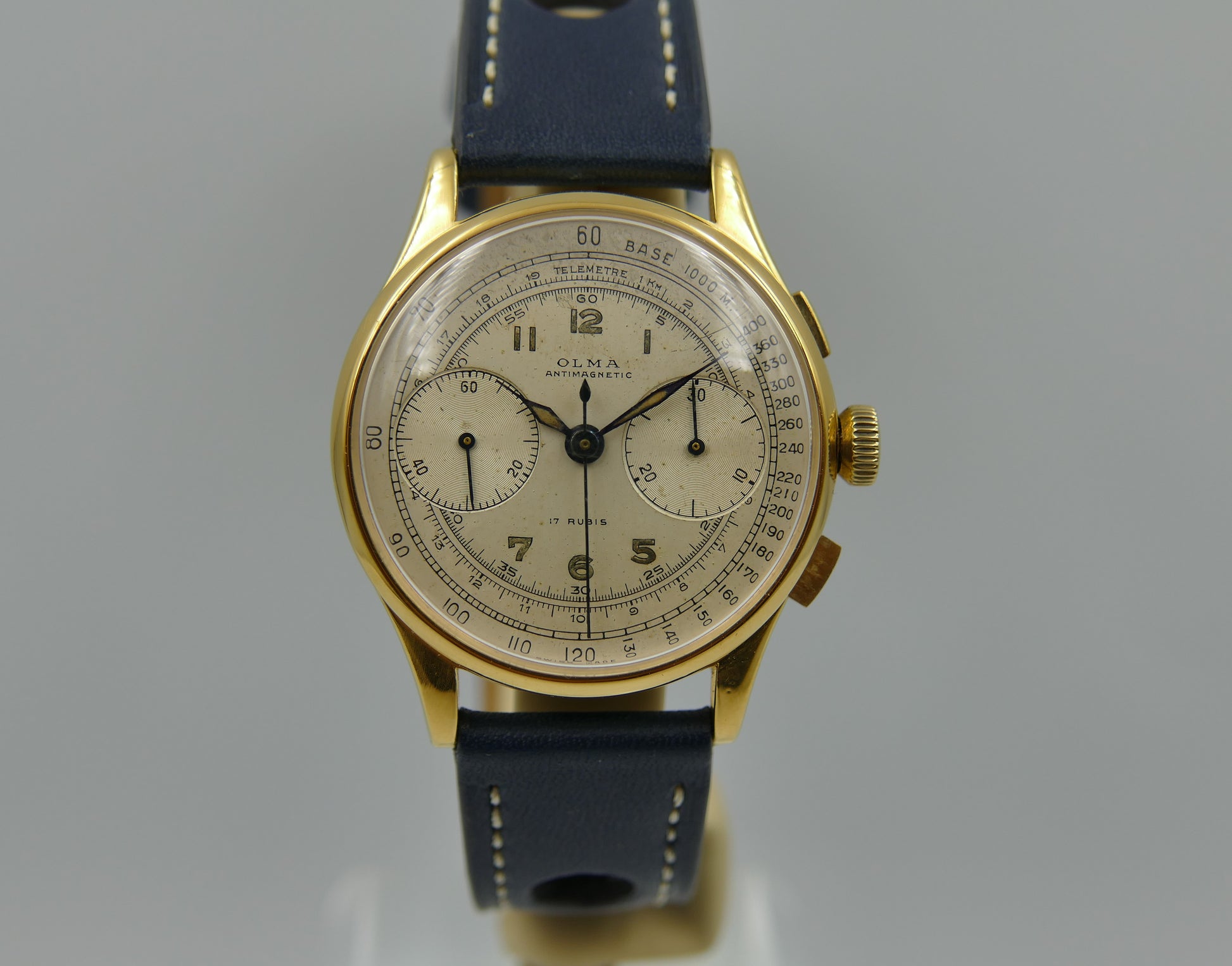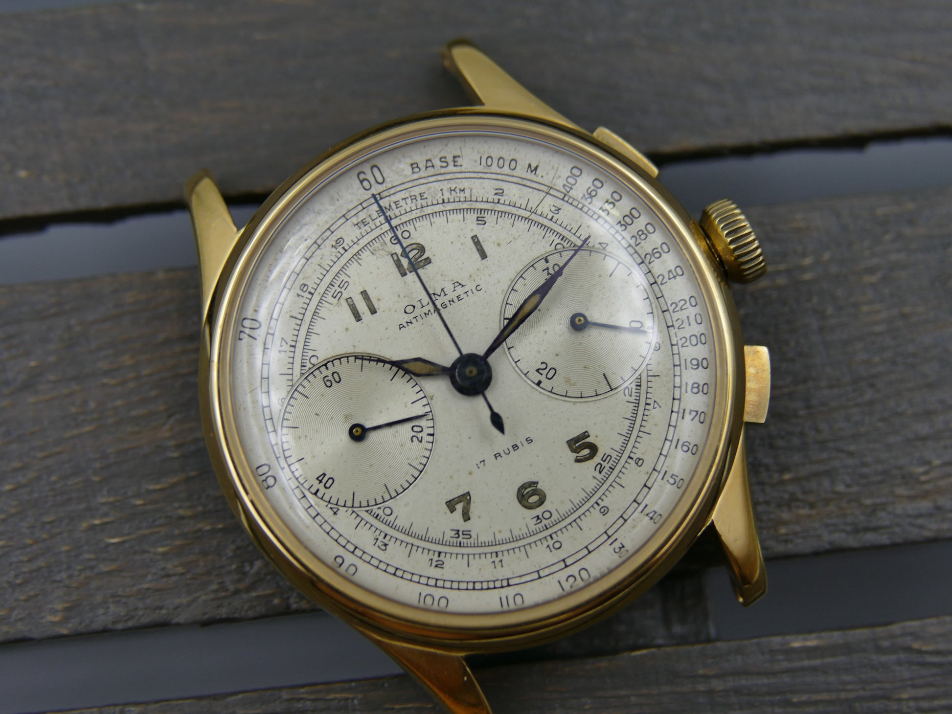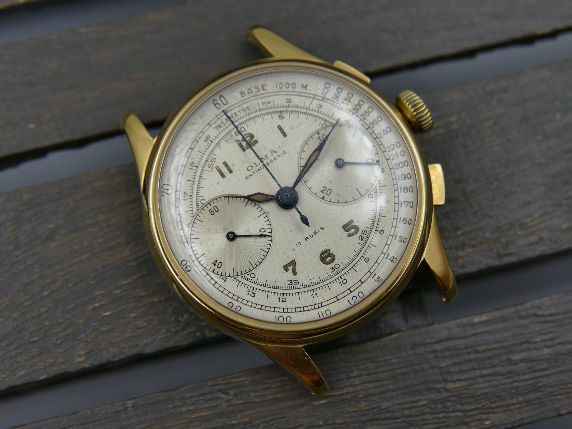 60s vintage watch mens Olma chronograph landeron 48 gold