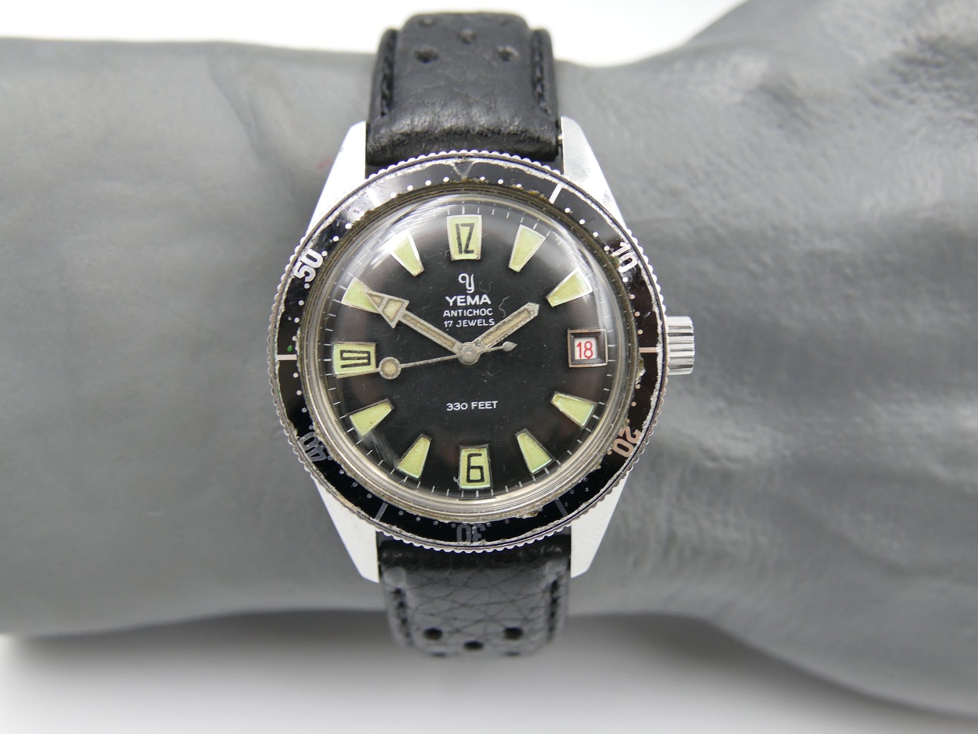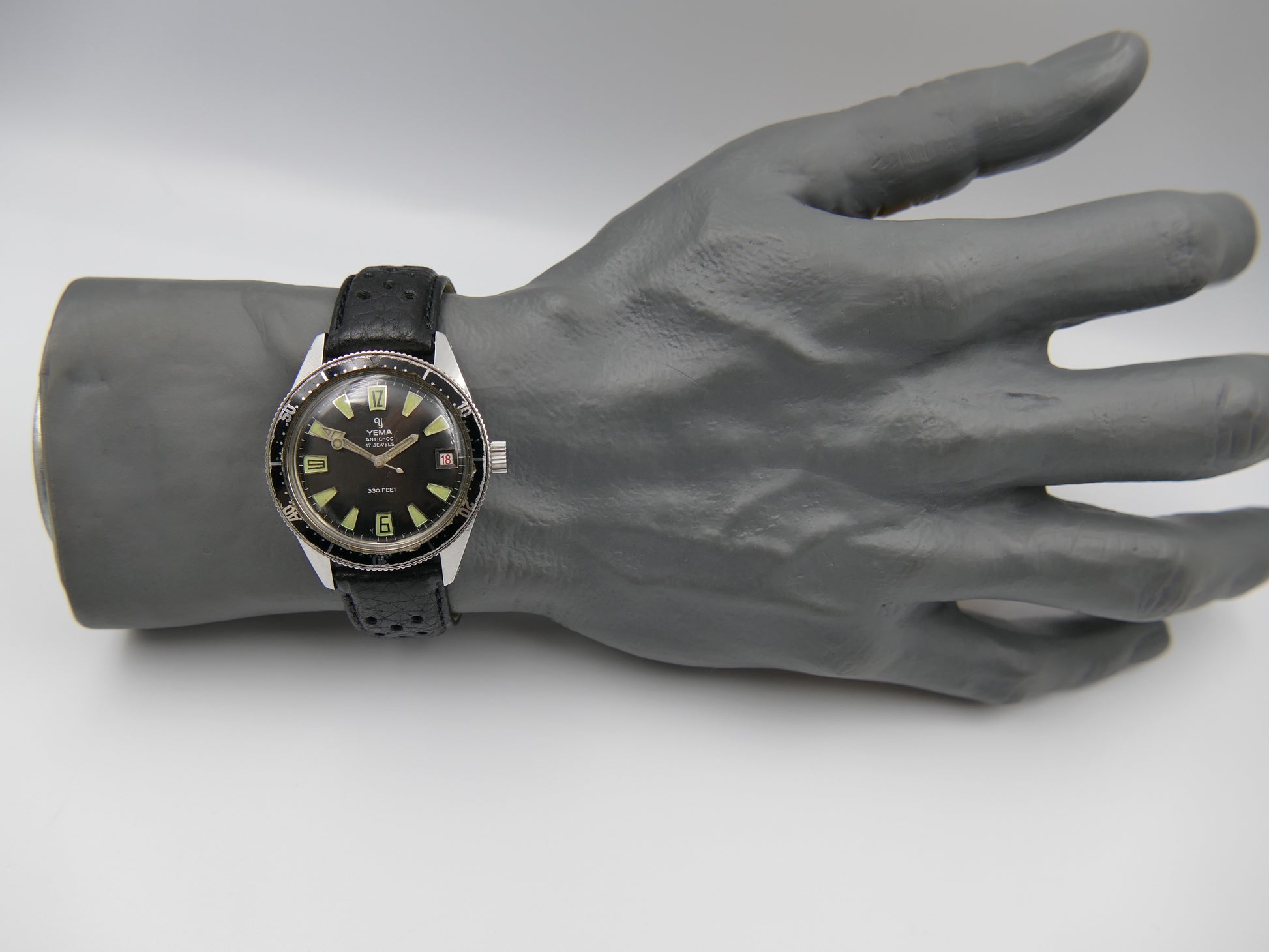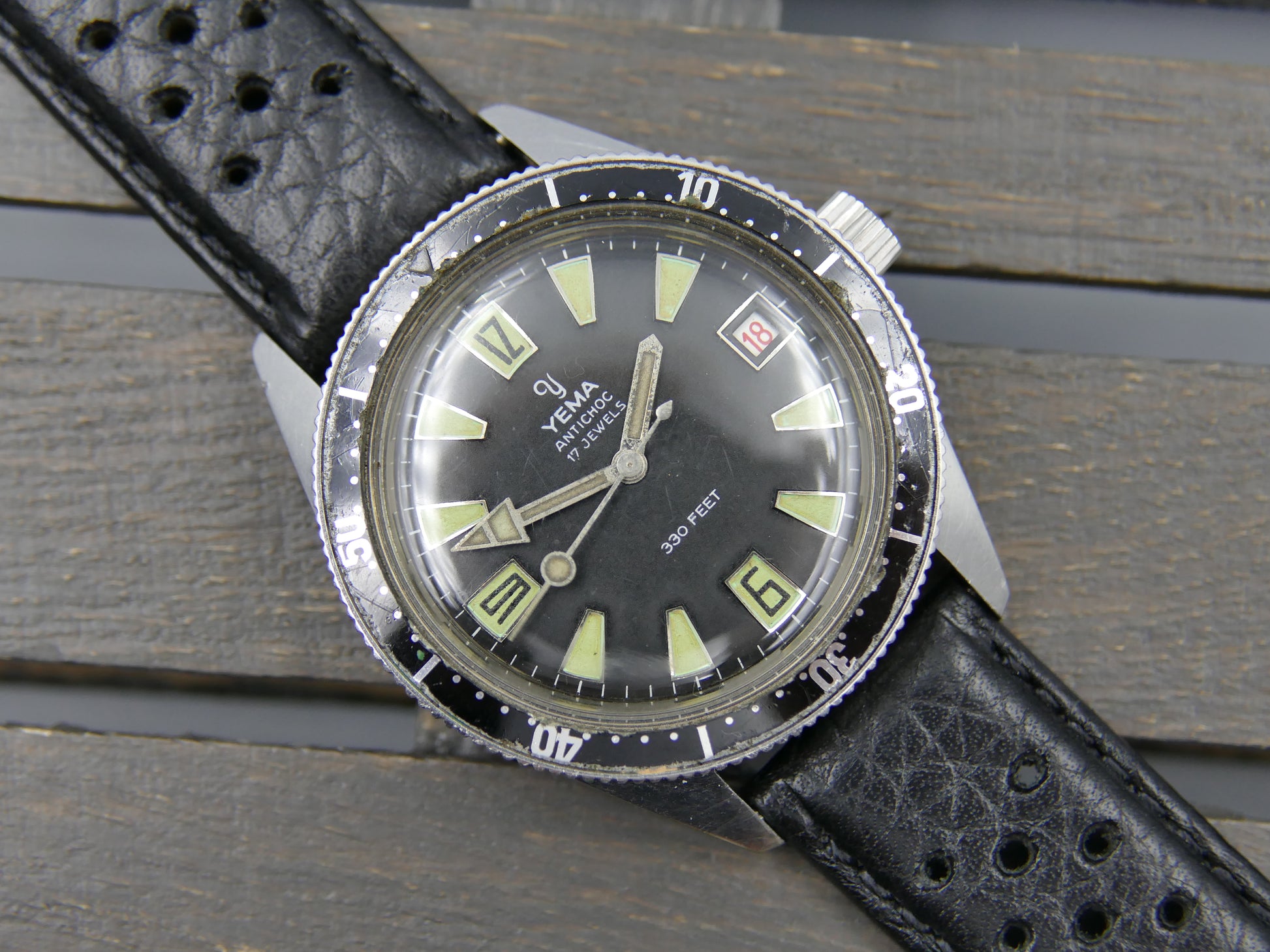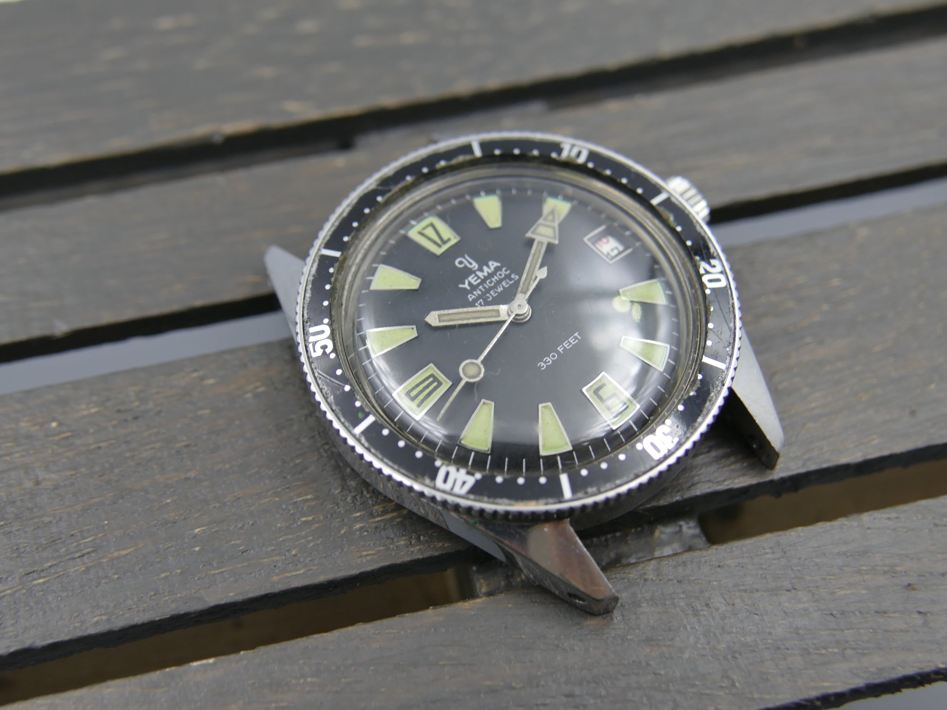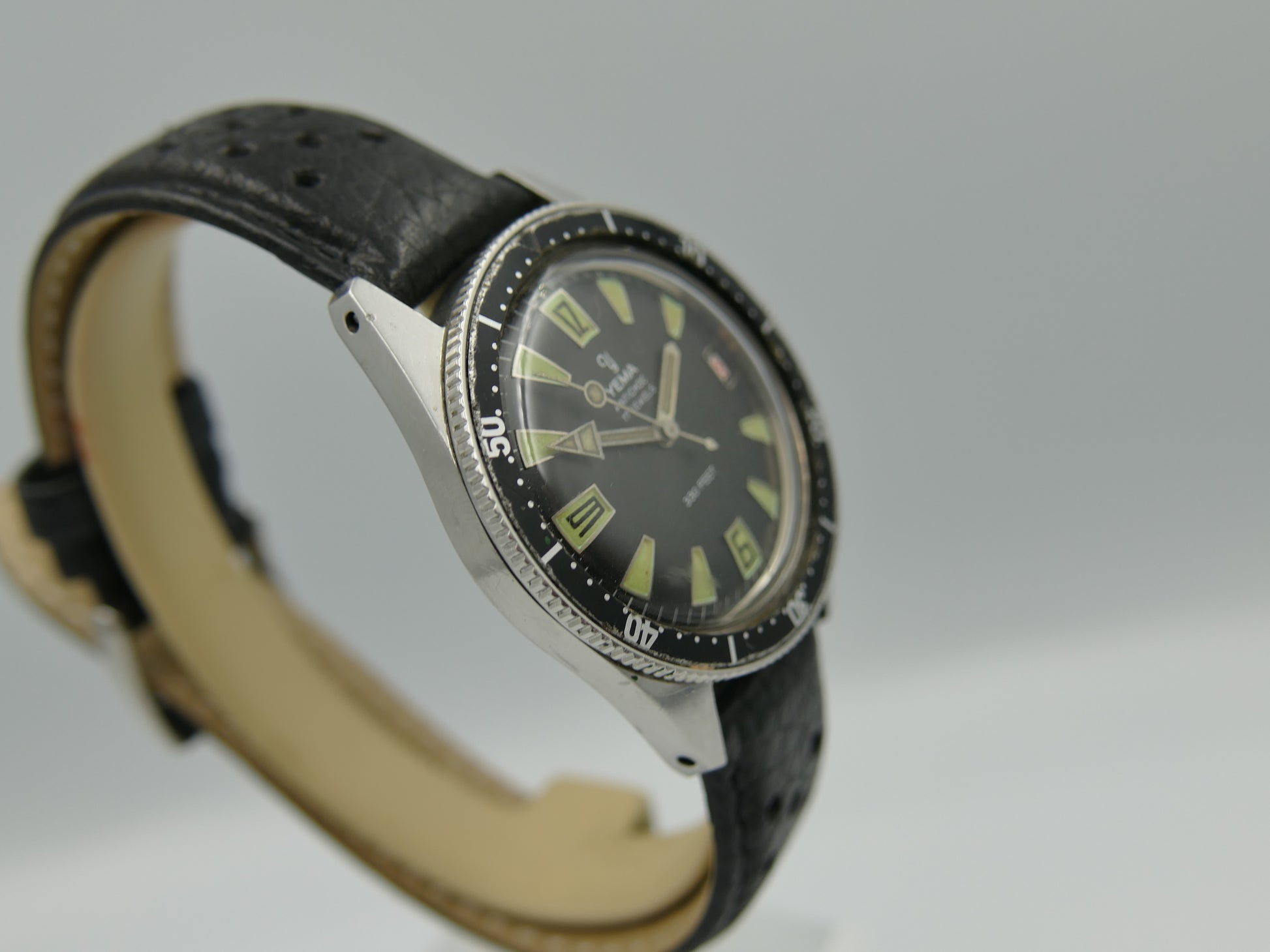 60s vintage watch mens Yema 330 feet SKIN DIVER ref. 8755 Steel Pre superman 38mm
