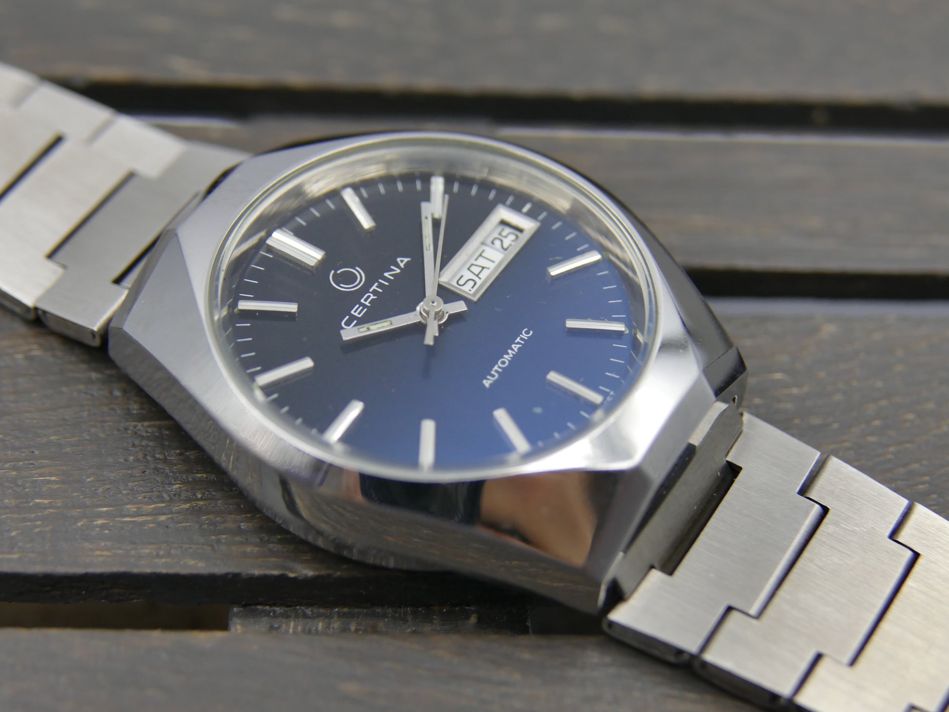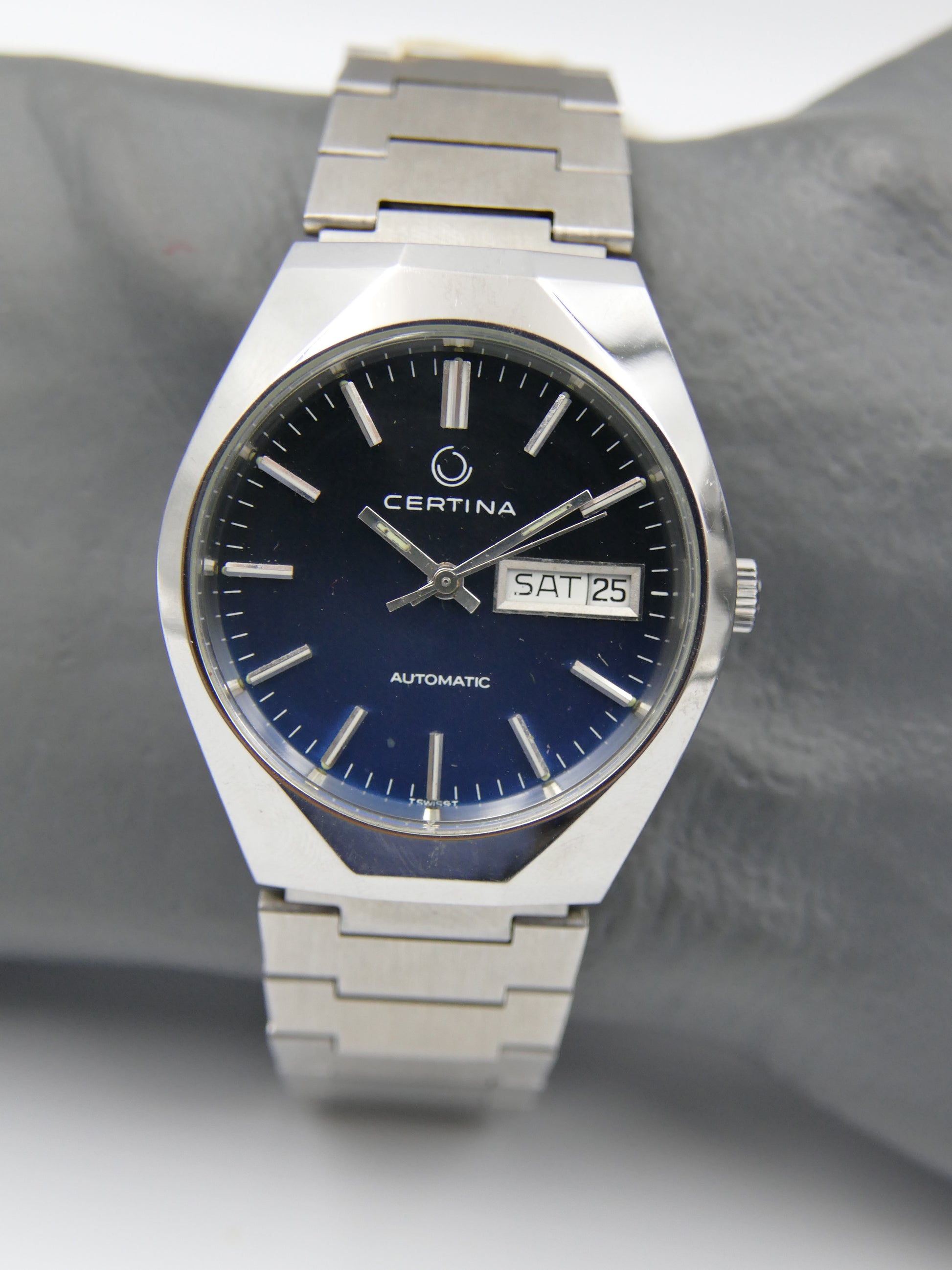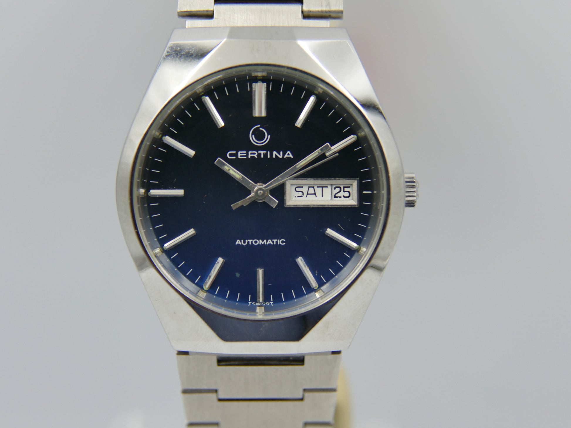 70s vintage watch Certina ref AHB012 automatic ETA 2789 blue dial steel NOS