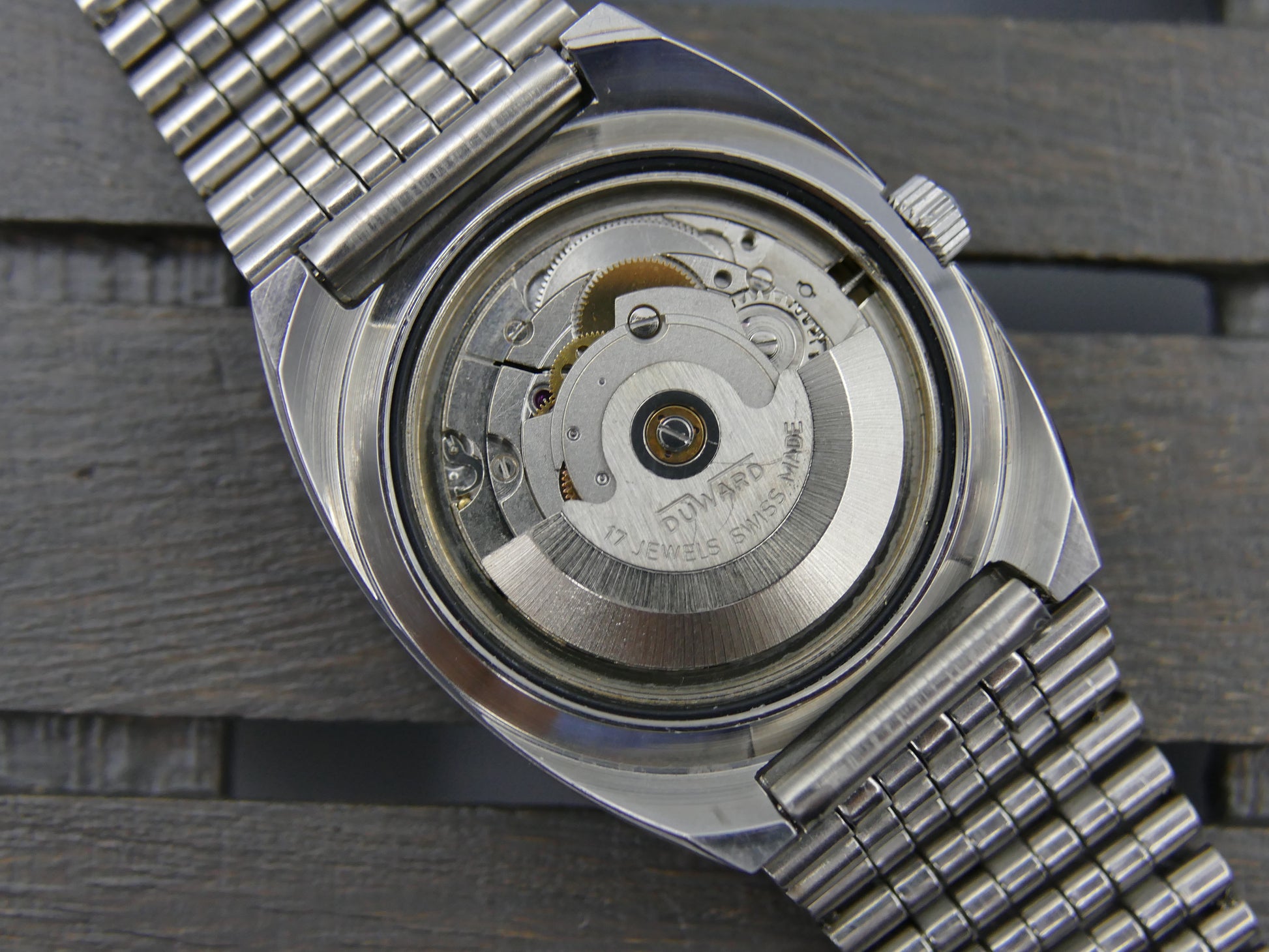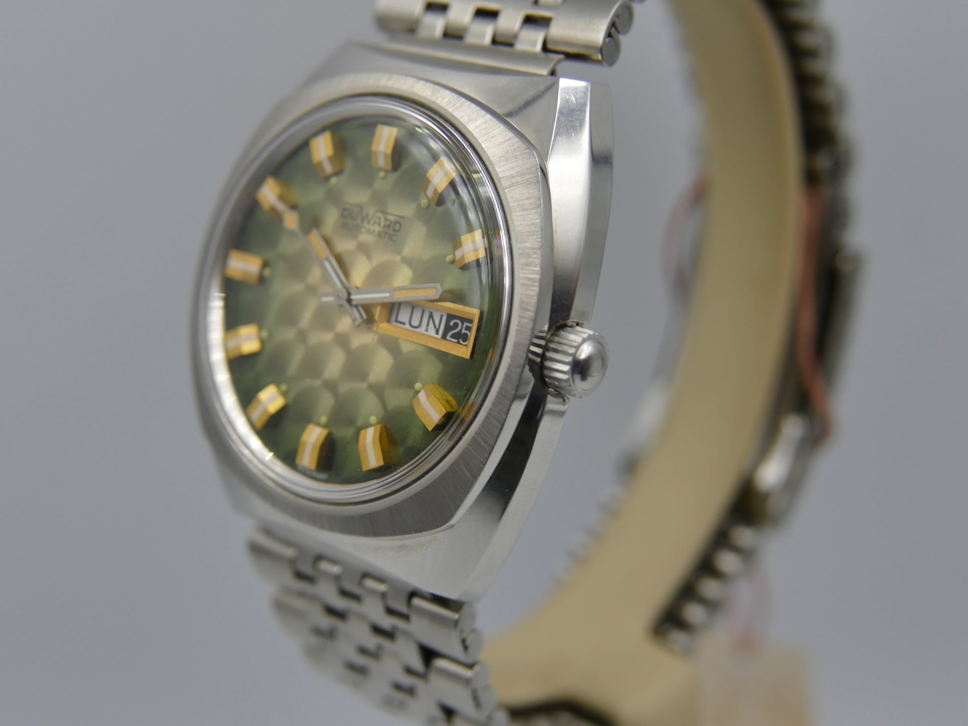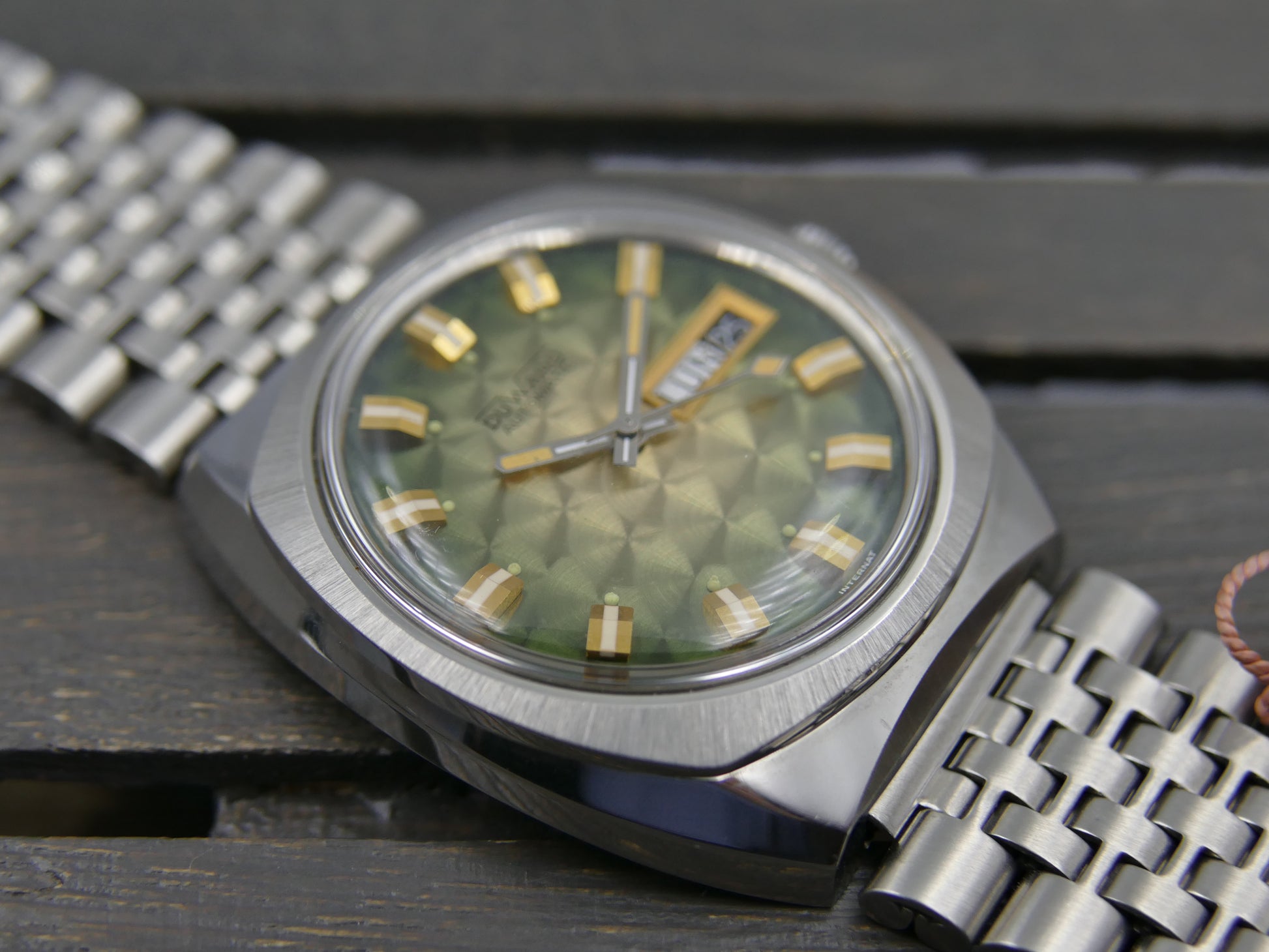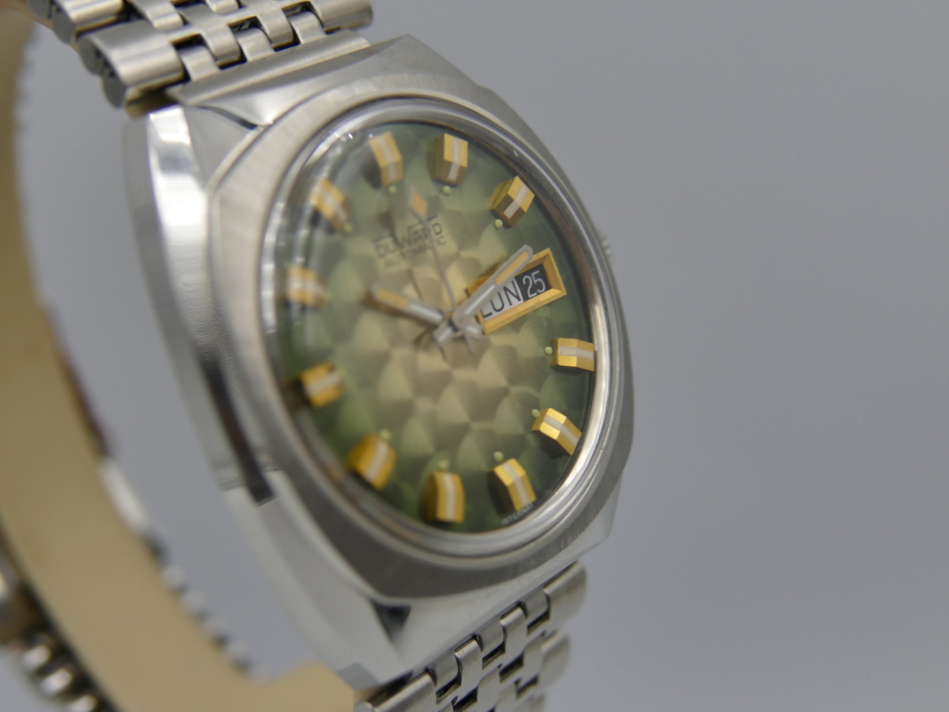70s vintage watch DUWARD Automatic Cal. ETA 2789 Ref. 6002 green brushed circular dial NOS