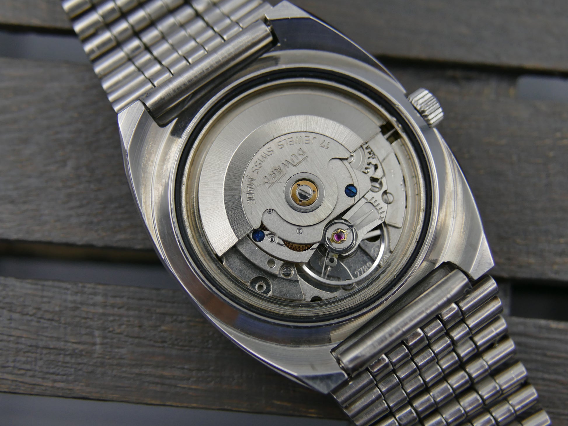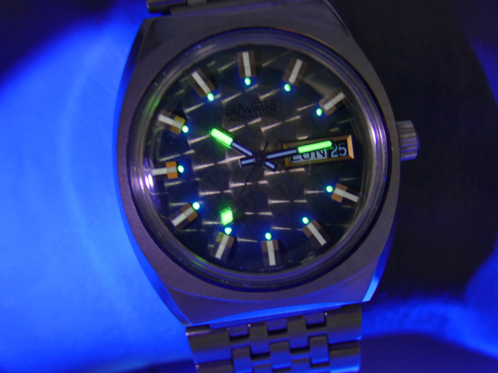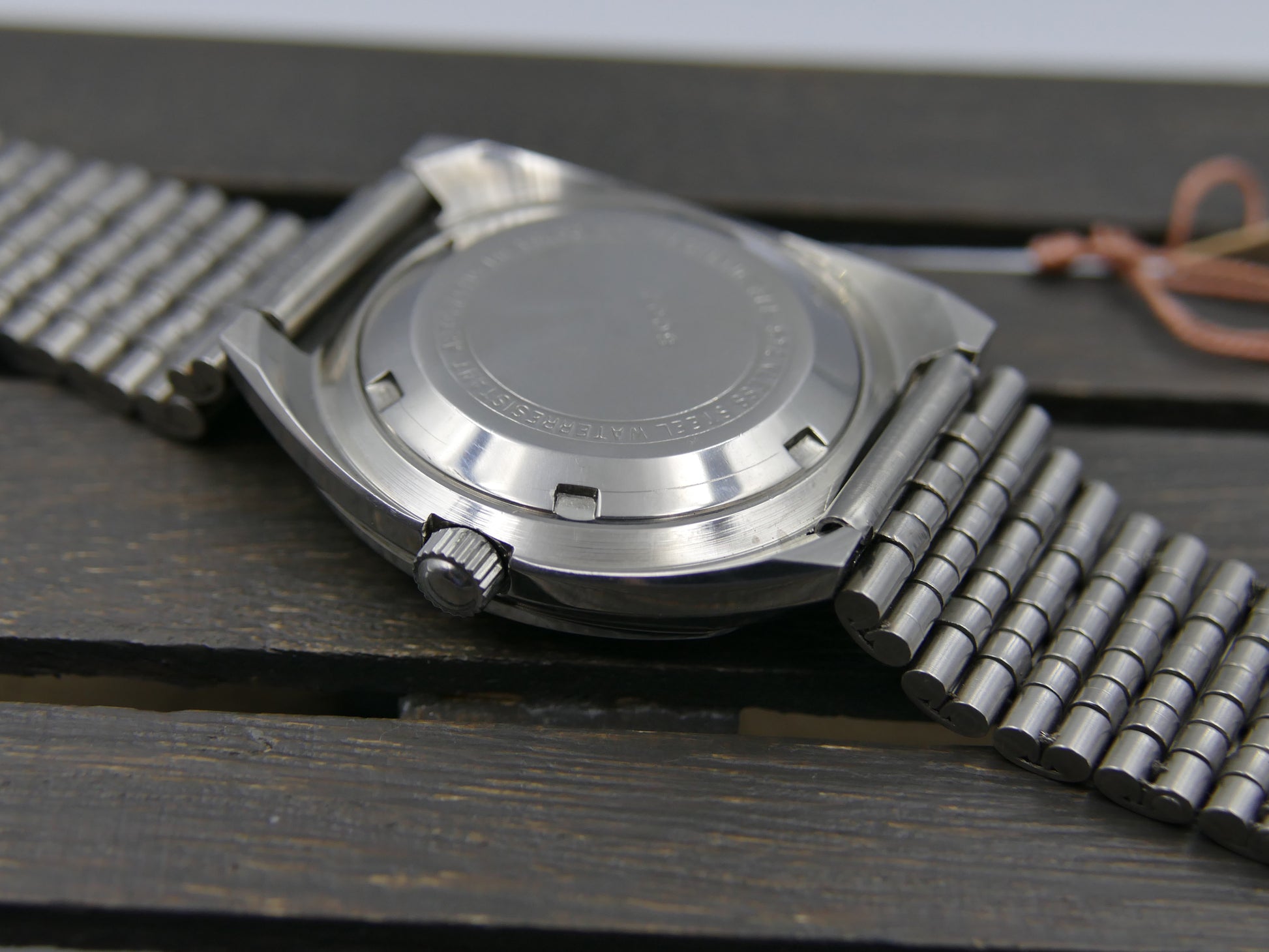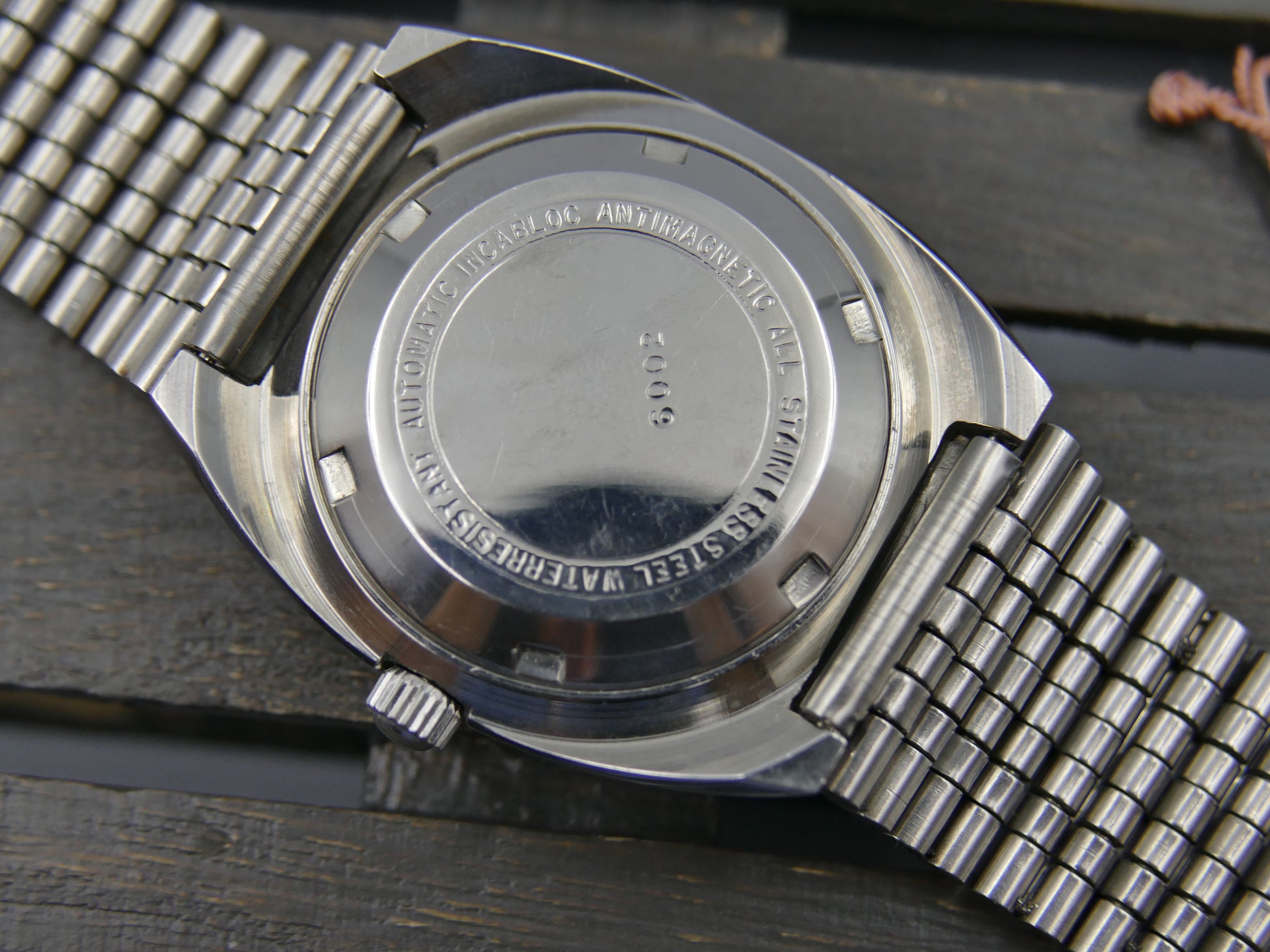 70s vintage watch DUWARD Automatic Cal. ETA 2789 Ref. 6002 green brushed circular dial NOS