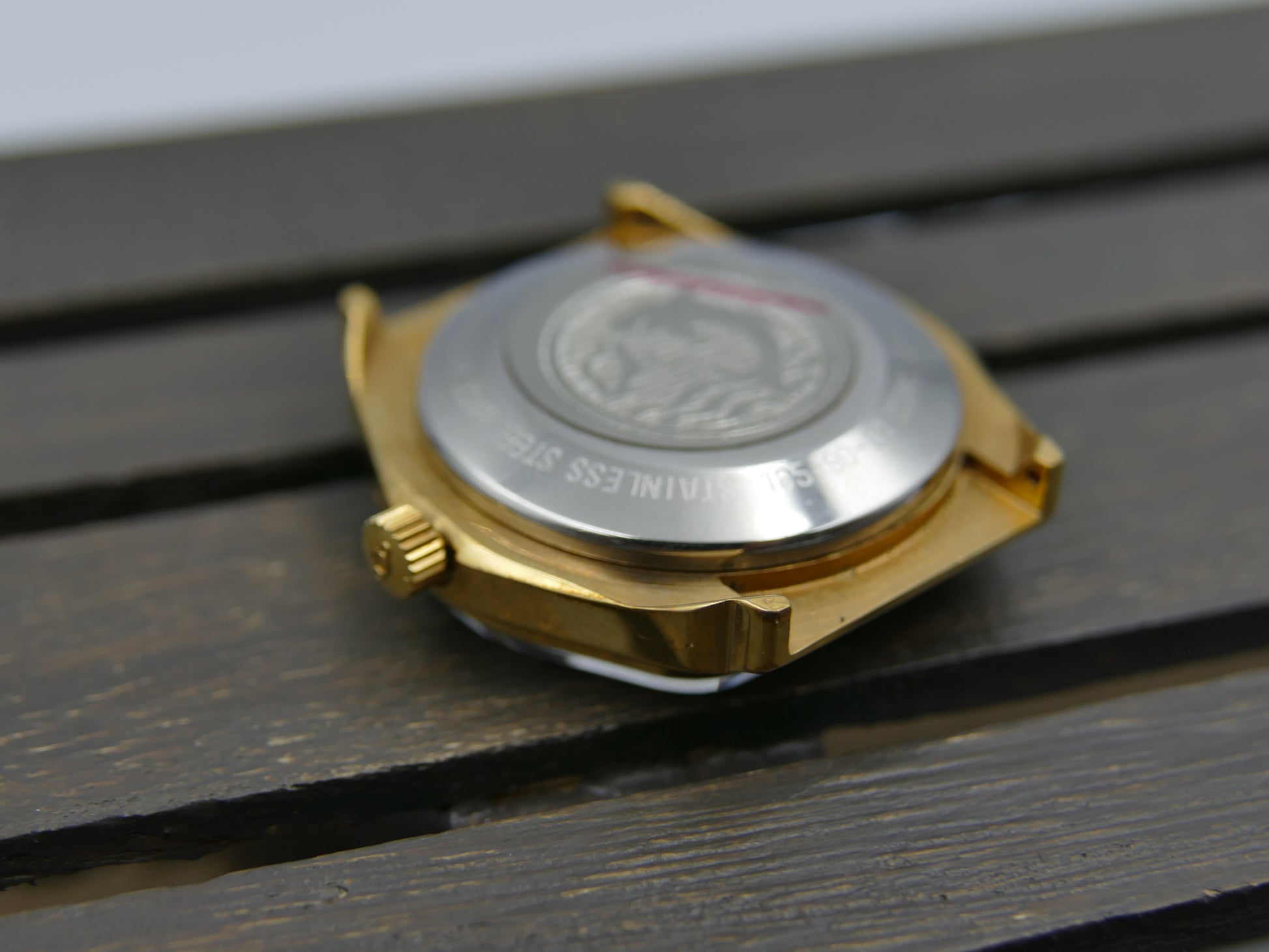 o Hexagonal gold plated case, and back in stainless steel, ref. 165-90-01, case stamped for portuguese market,