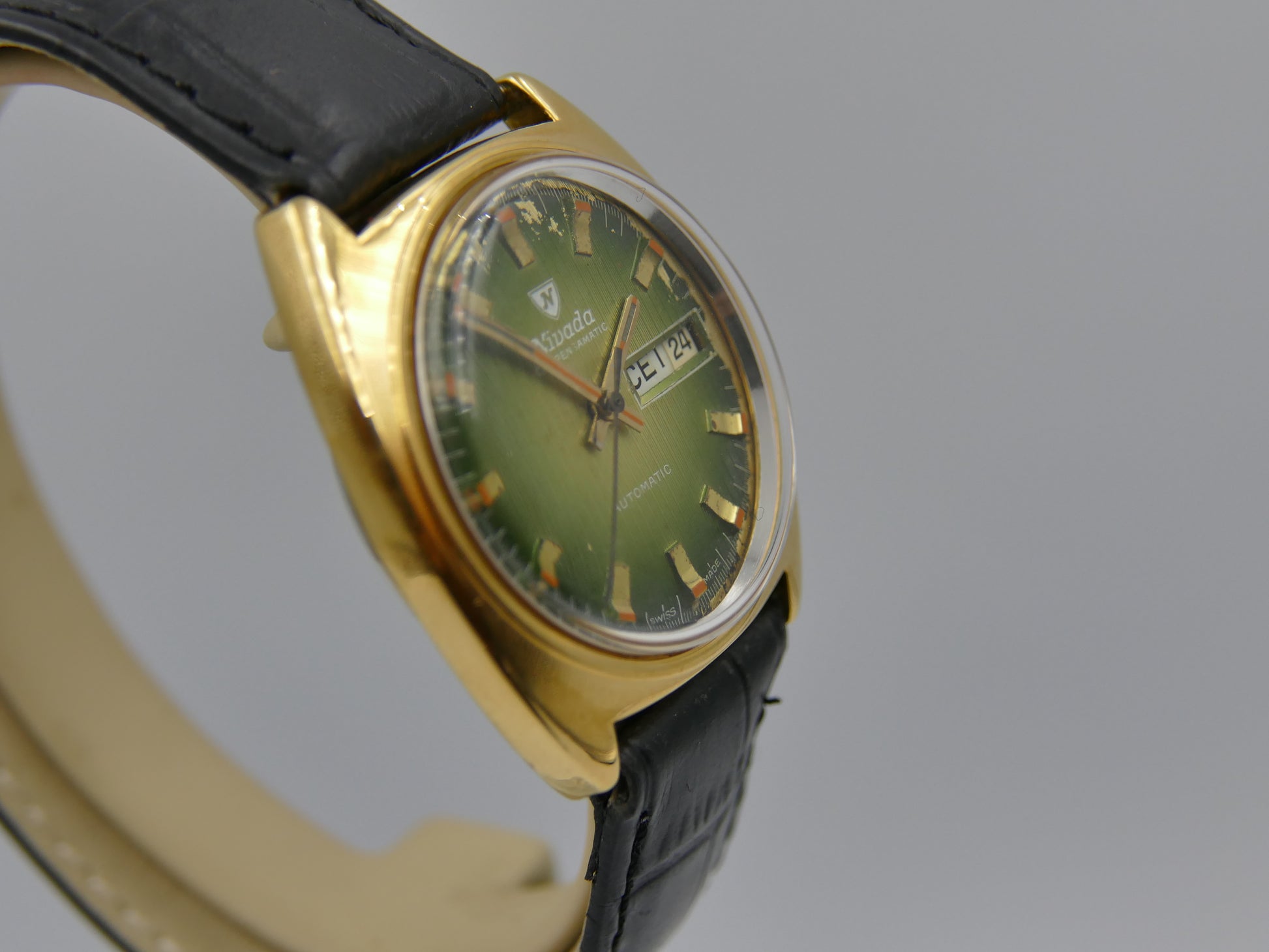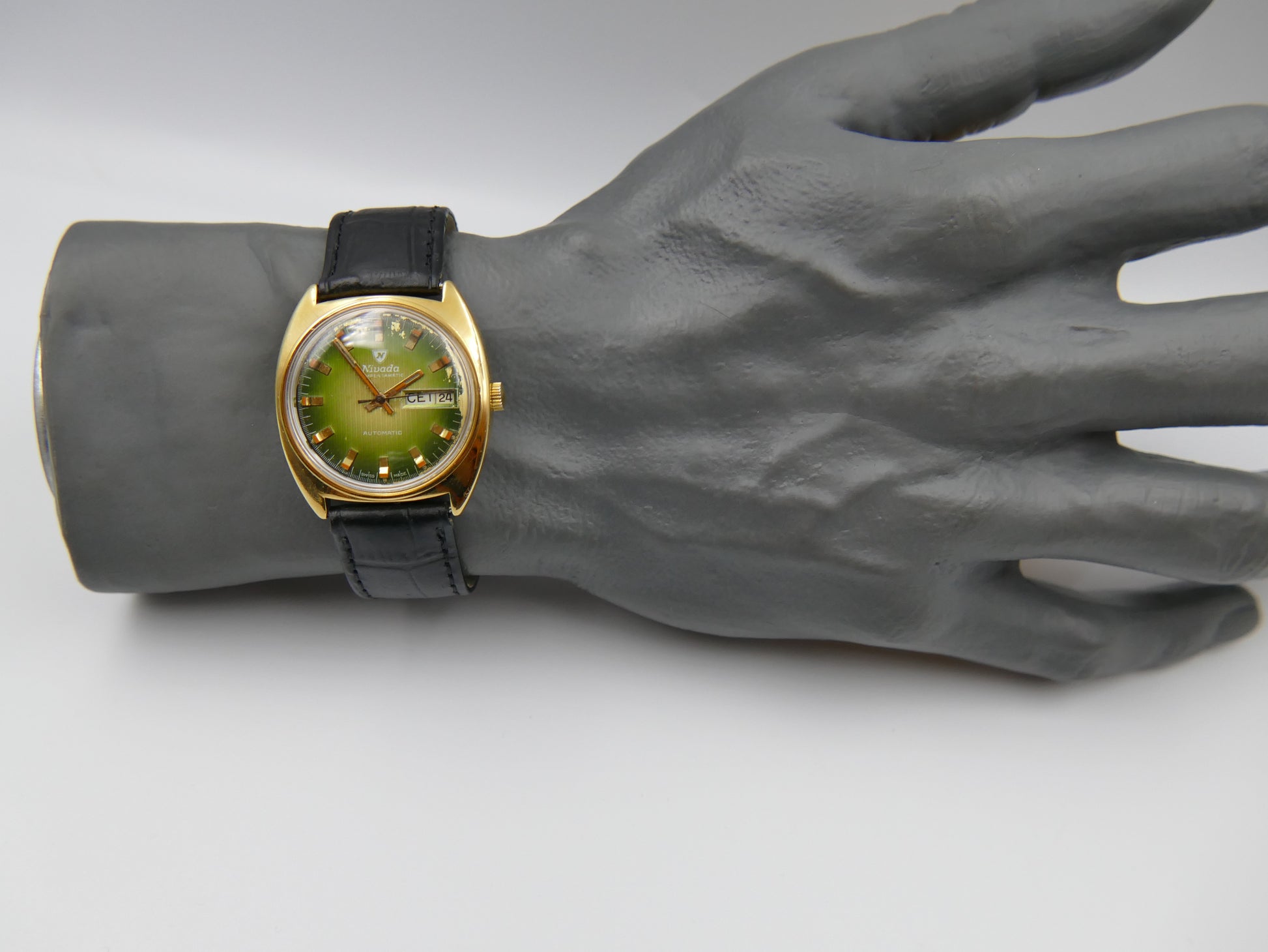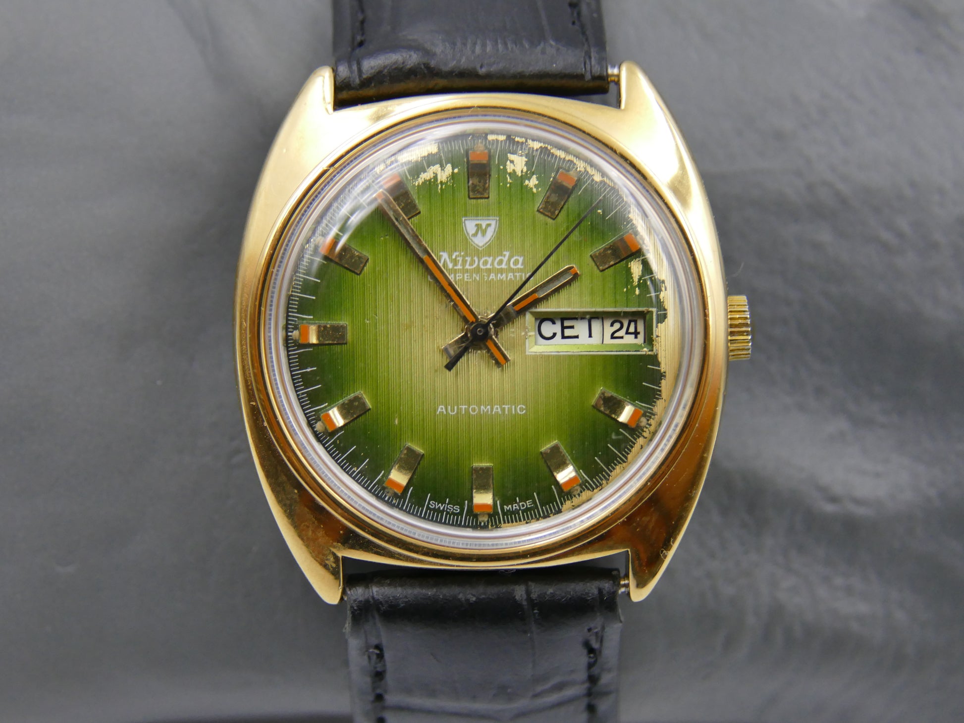 70s vintage watch mens Nivada Compensamatic ref 67111 automatic AS 2066 green dial serviced