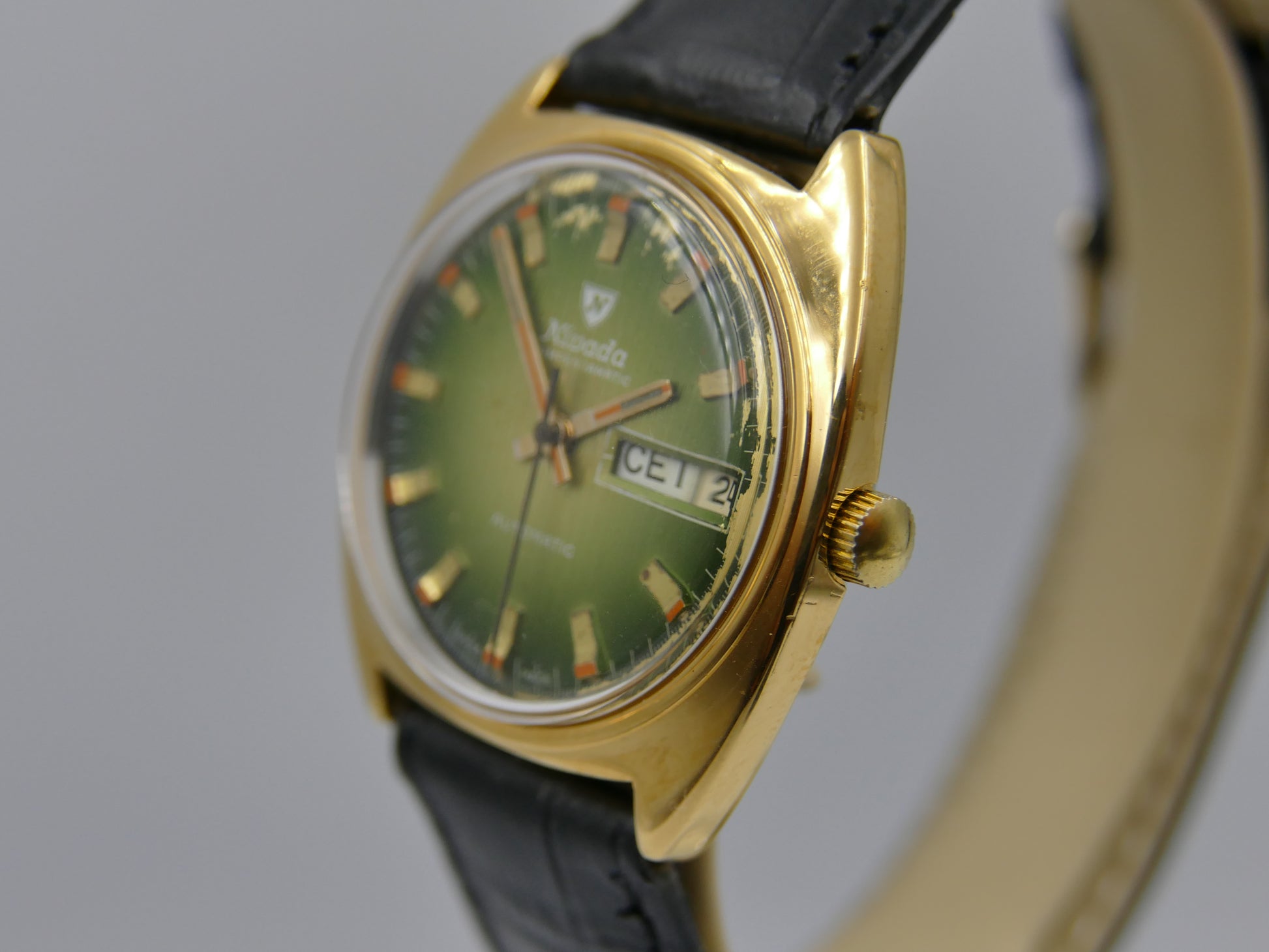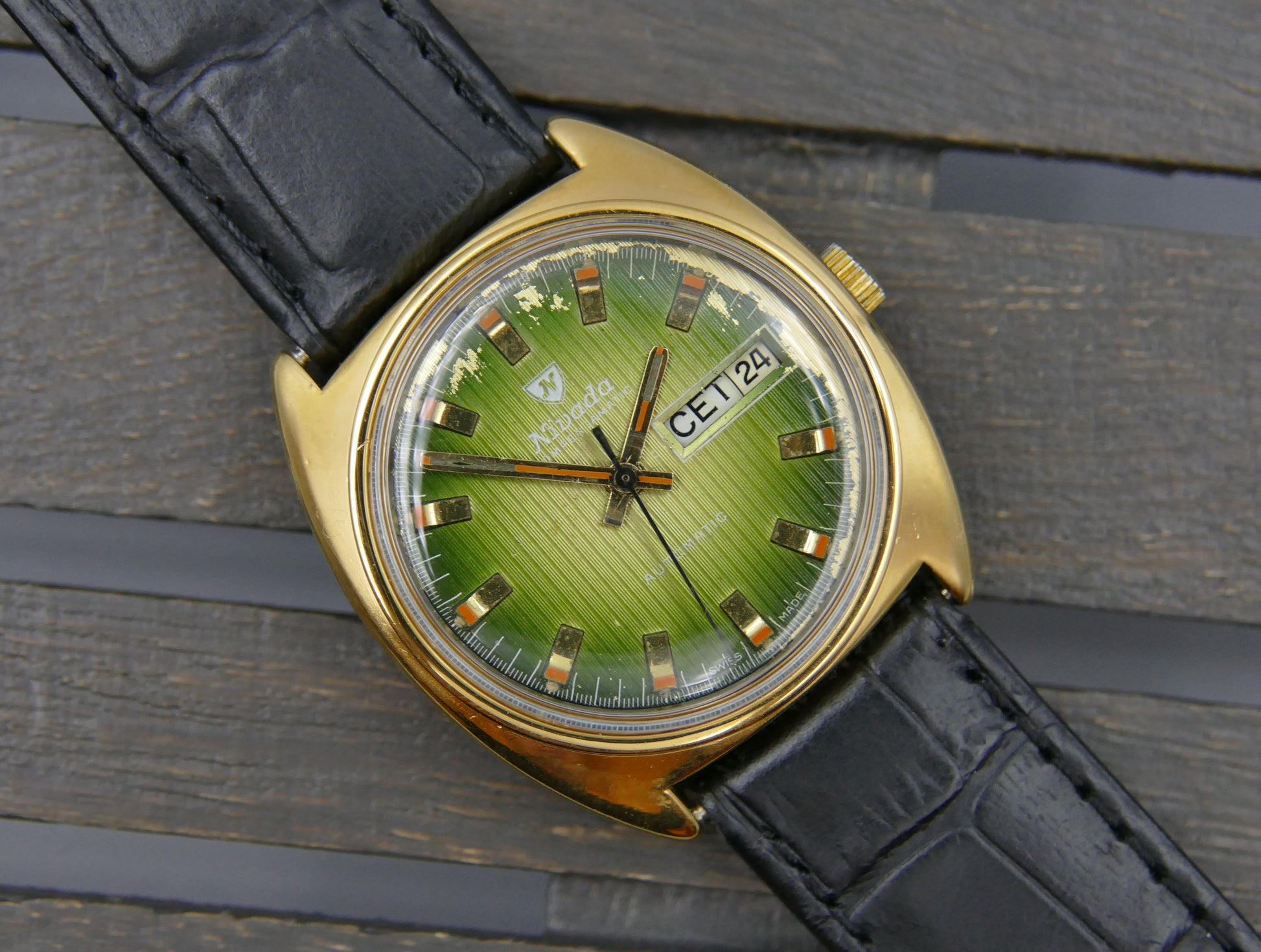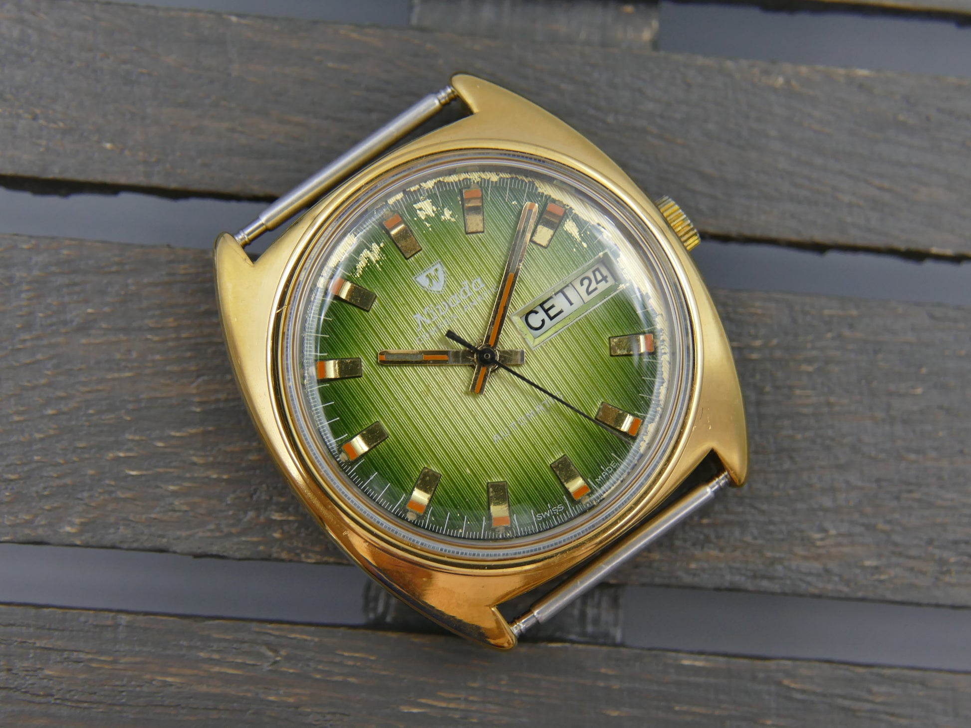 70s vintage watch mens Nivada Compensamatic ref 67111 automatic AS 2066 green dial serviced