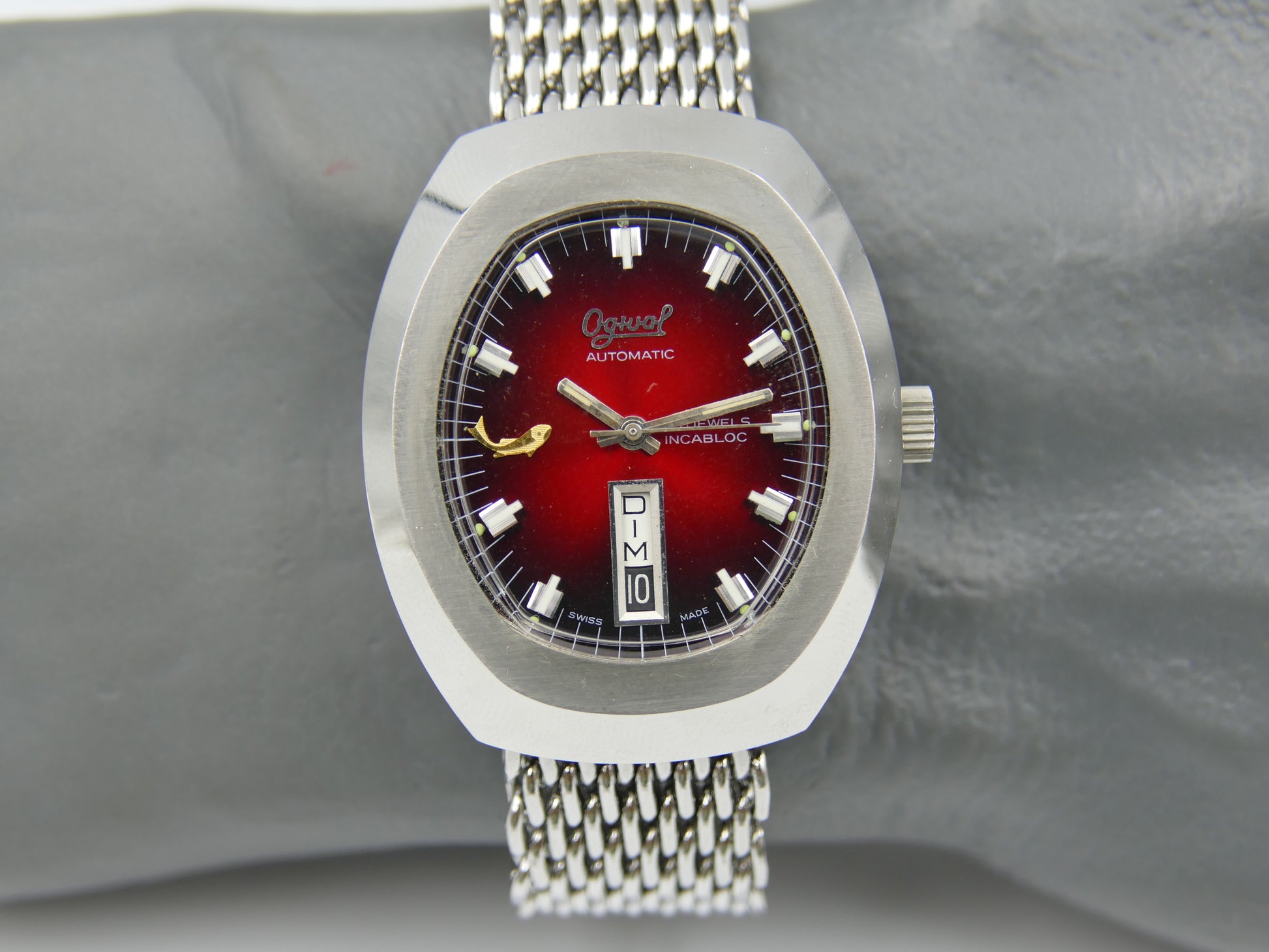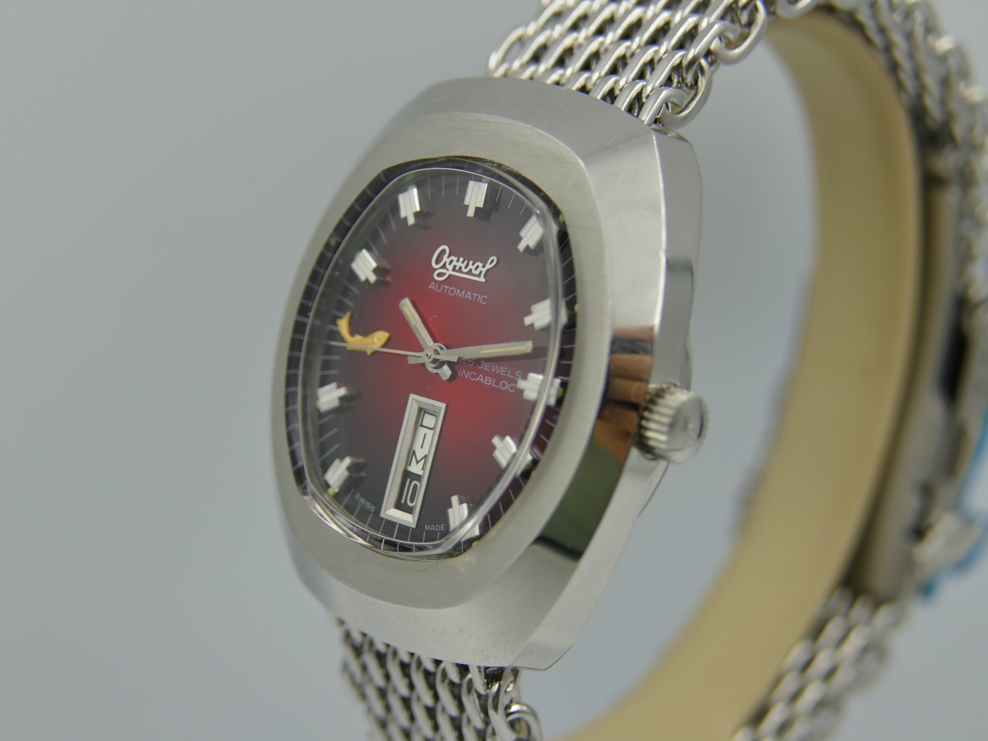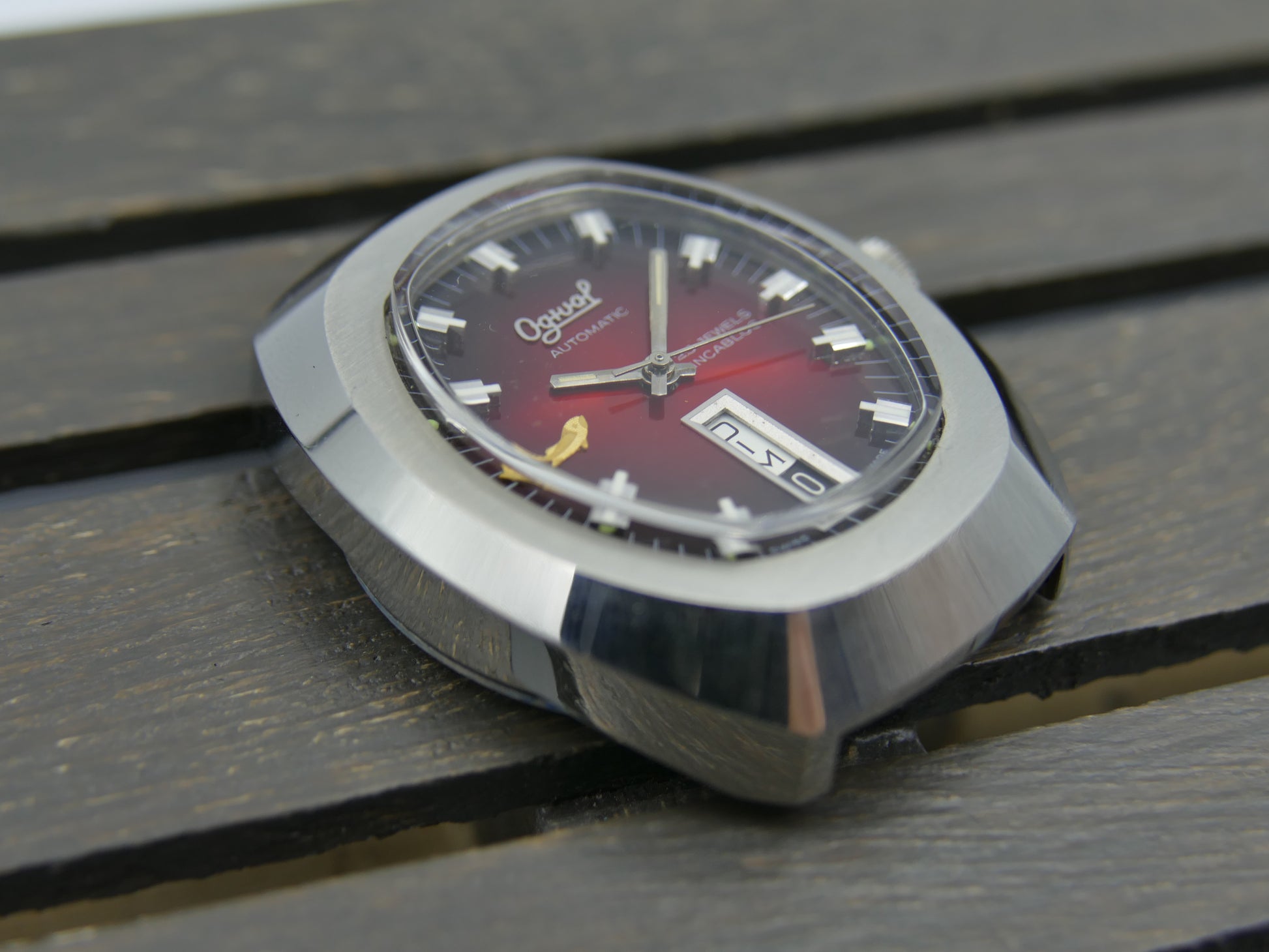 70s vintage watch mens Ogival a2614 burgundy automatic AS 2066 NOS