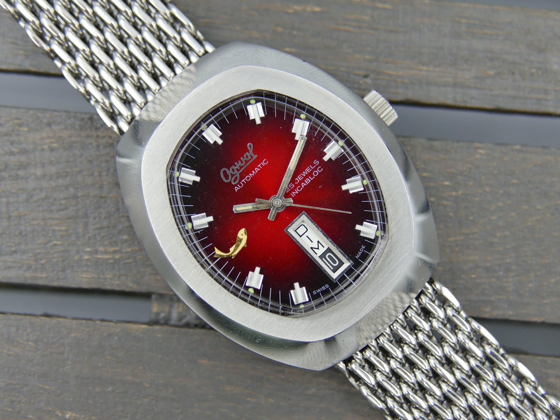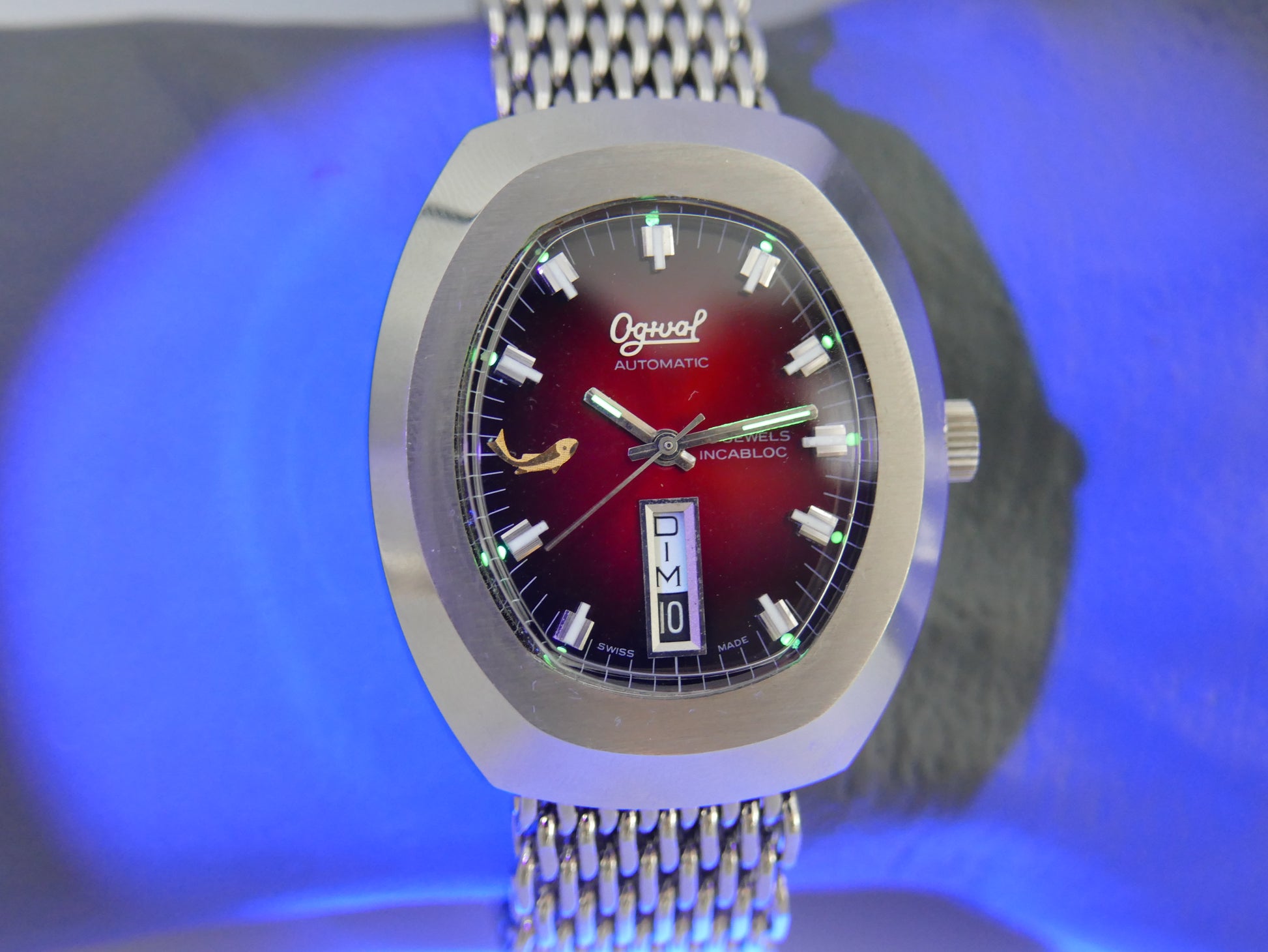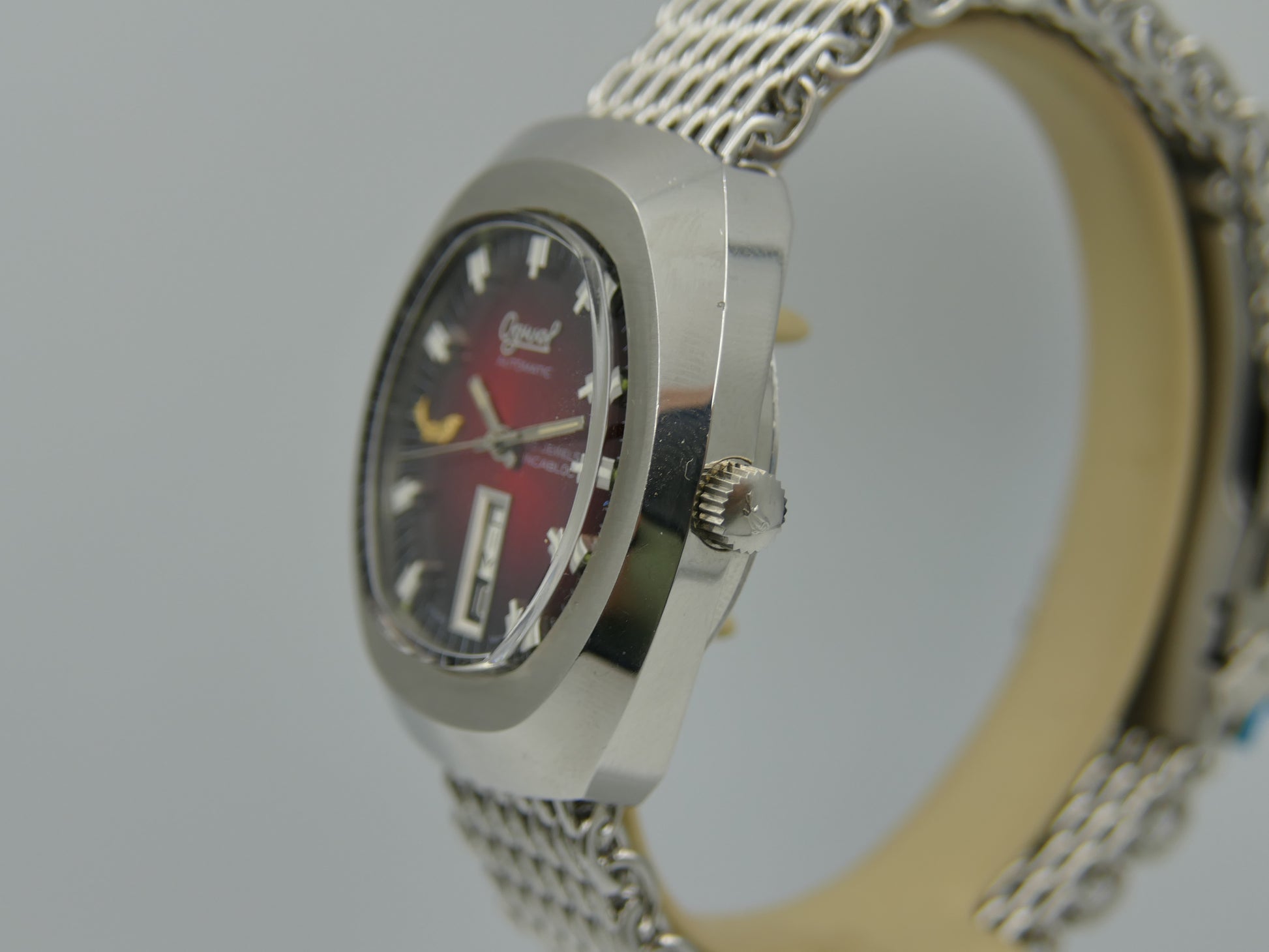 70s vintage watch mens Ogival a2614 burgundy automatic AS 2066 NOS