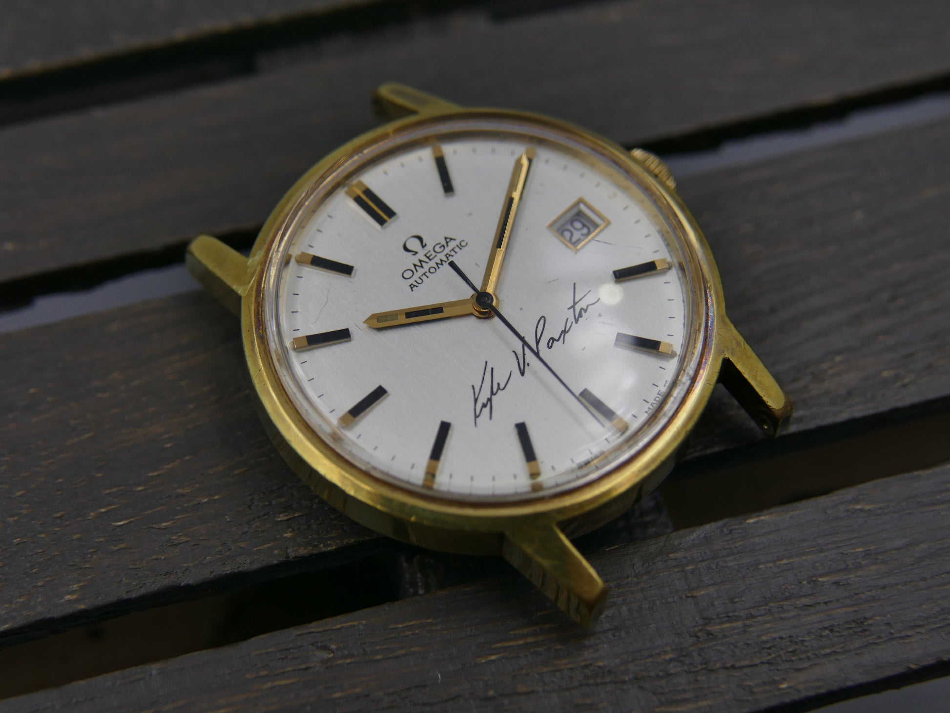 An Omega Geneve with a signature on the dial in the form of an autograph, probably in homage to someone in good standing