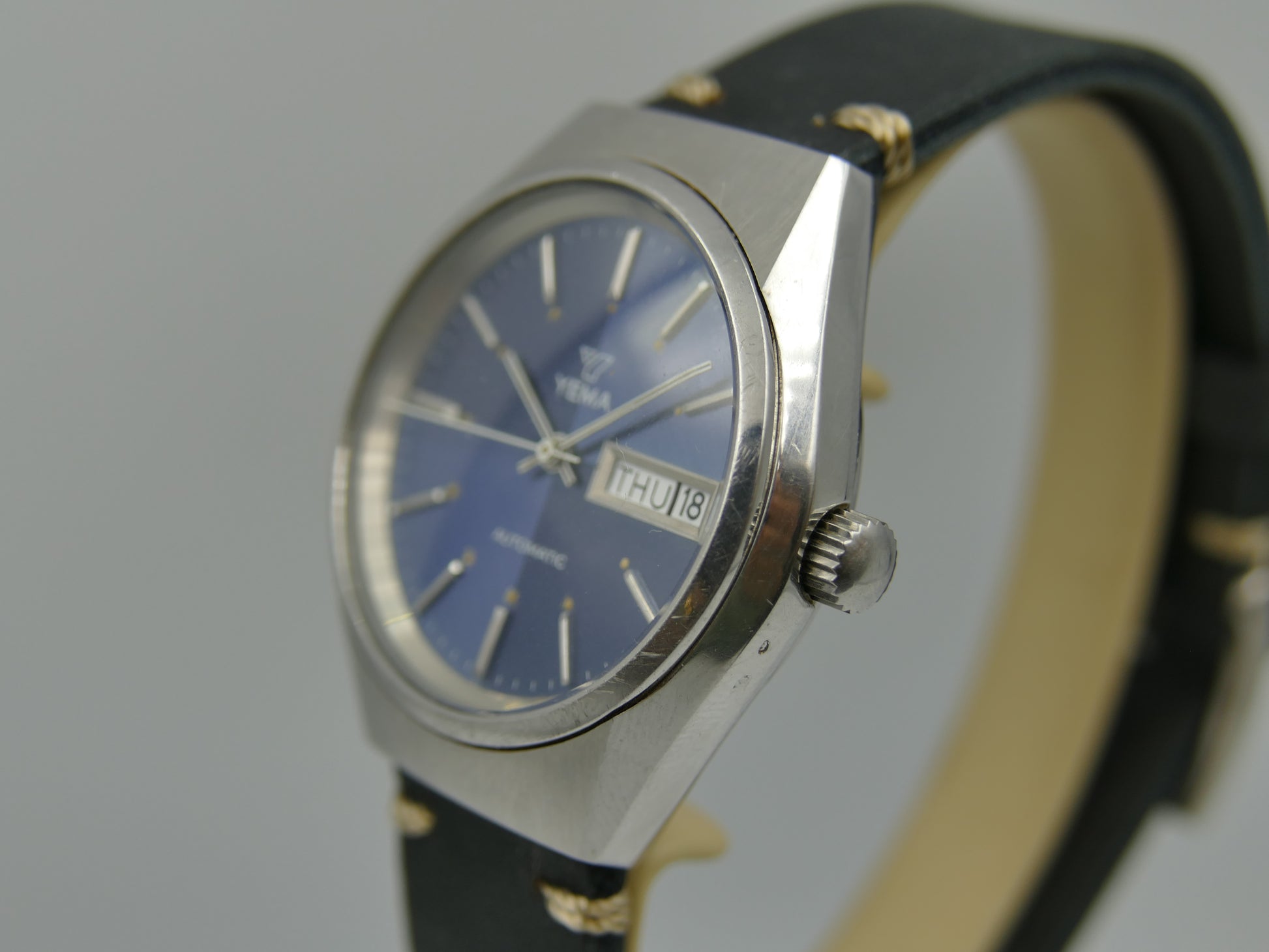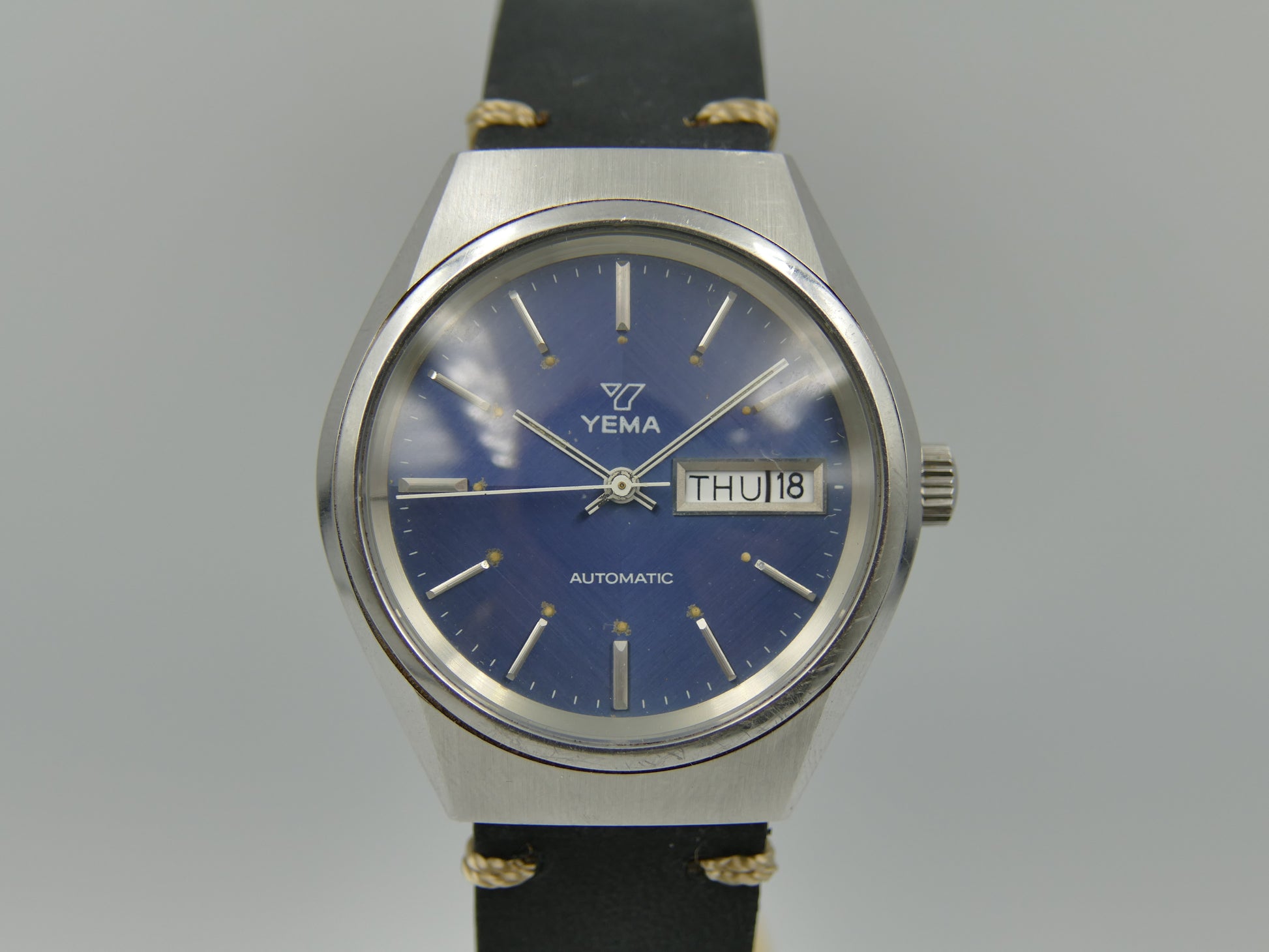 70s vintage watch mens Yema 71116 blue dial automatic FE 4612 Steel MINT