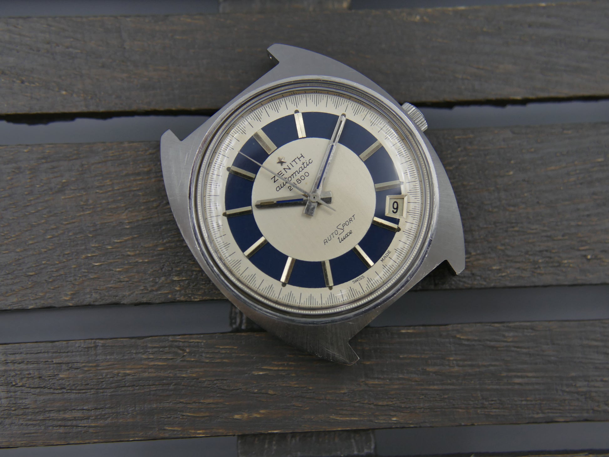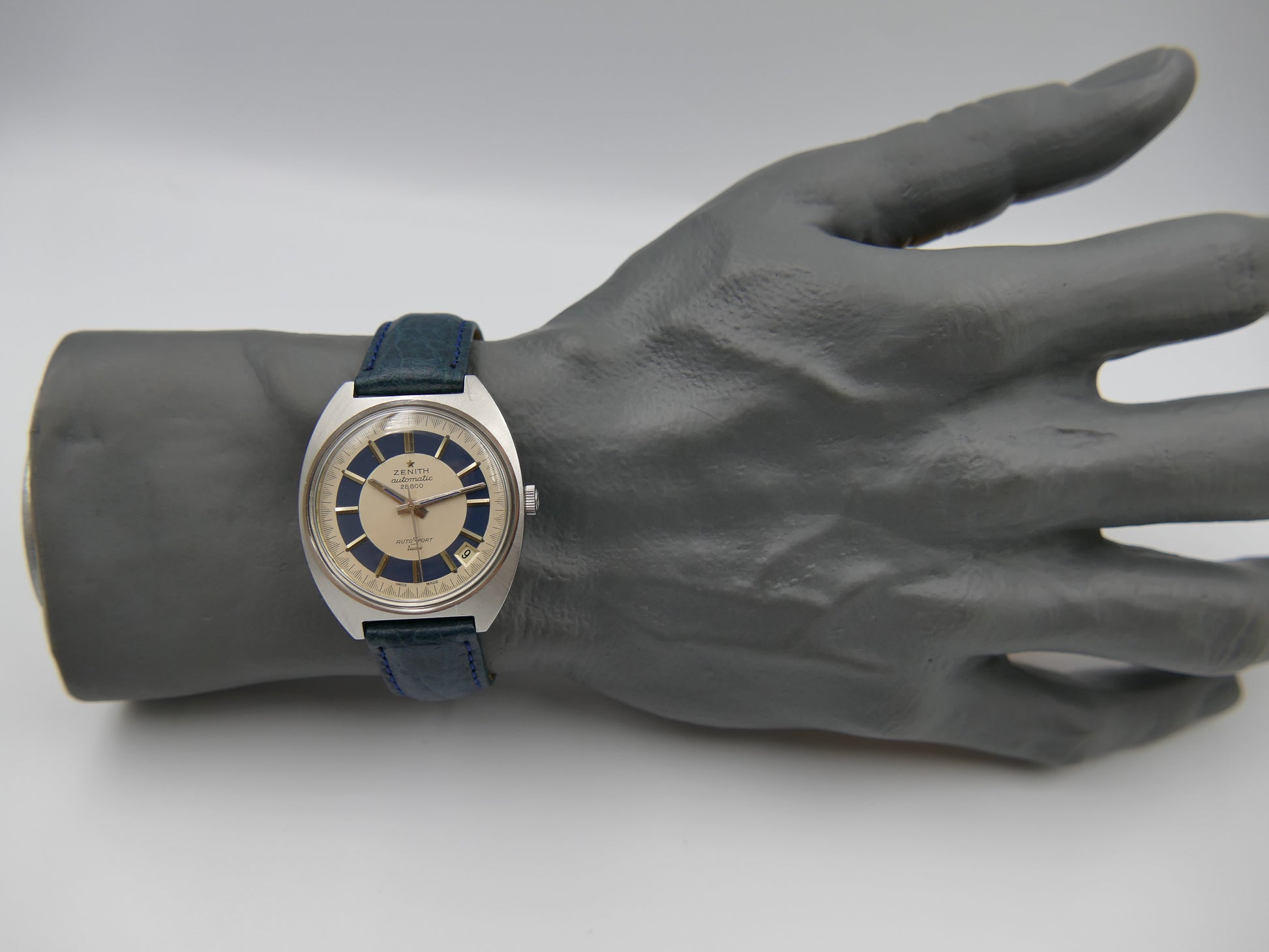 From the early 70s this magnificent and rare Zenith autosport luxe blue&silver dial, recently serviced ...